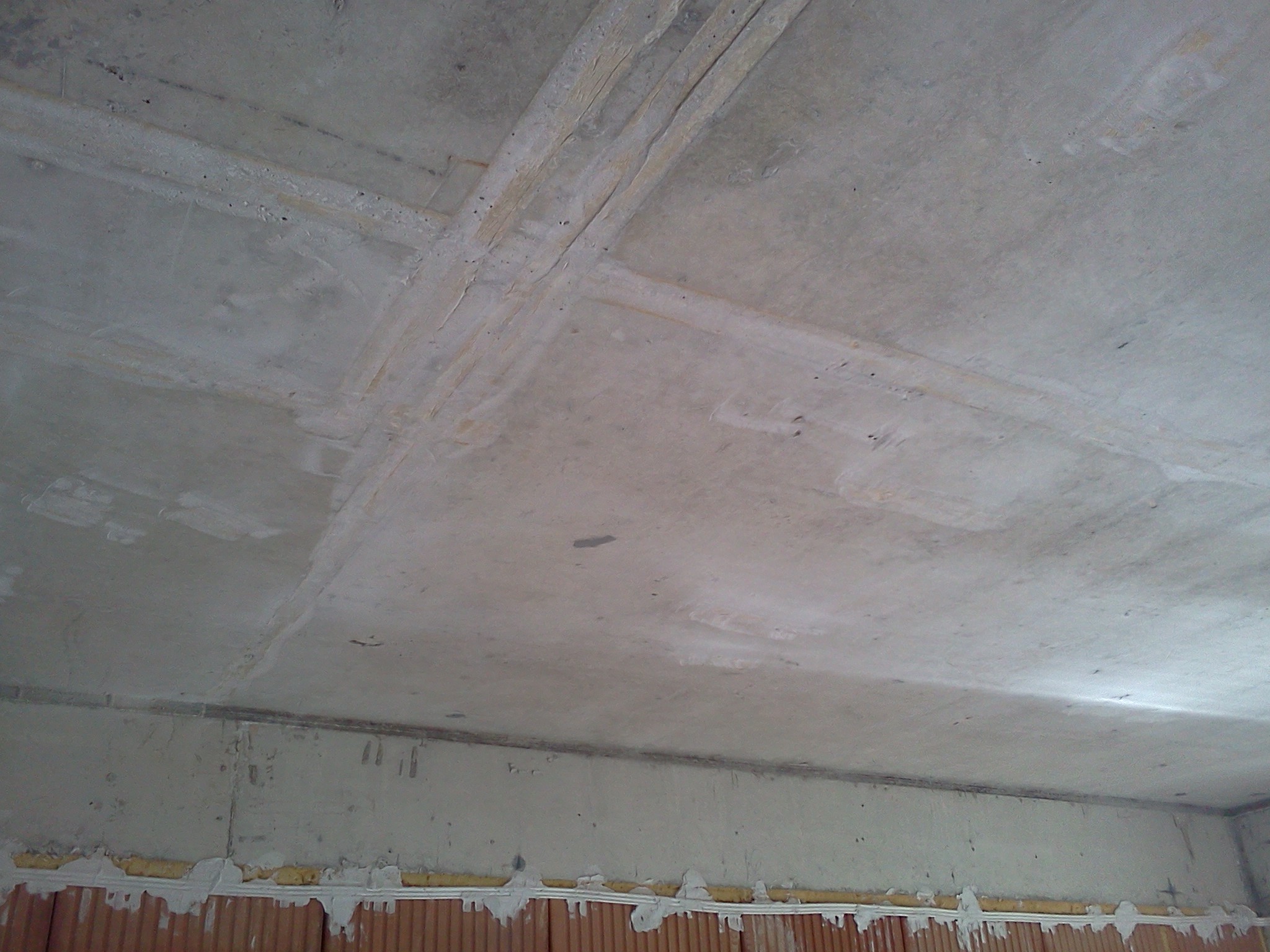 Плочата е лята с кофражен шперплат, леко омаслен. На снадките имаше хартиено тиксо, да не изтича млякото. Няма сваляне това тиксо, но го преборих с диамантината. Също така обрах мустаците на снадките, да не повдигат. Търся някакъв финиш максимално тънък, ще мина наред всичко. Няма да коригирам нива, само да не личат къде са били платната. Стените най-вероятно ще са гипсова мазилка, ако има значение.
