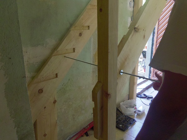 Понеже исках да е възможно най-ниско, не дупчих стените за греди а и пуснах 4 греди с които стъпва на пода.