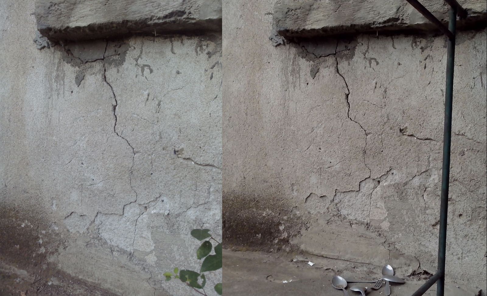 Моето мнение е, че къщата (като не броим покрива,разбира се) е в прилично състояние.Единствените забележки са в горната част от къщата - откъм склона.Има няколко пукнатини, които ни притесняваха естествено.В тази част,всъщност няма долен етаж ,заради денивелацията там първата плоча излиза на нула с терена.Предполагам ,че около един метър основите са стени от камък и обикновен насип, отгоре залят с бетон.Точно там са и въпросните пукнатини по стените.Не съм проверявал още, колко дъблоко са вкопани основите в земята.Незнам дали пукнатините са от слягане ,дали от липсата на дренаж или от нещо друго,но мисля че от миналото лято до сега няма никакво движение и разширение на пукнатините.Тогава направих снимки ,а преди няколко дена ги повторих и мисля че няма разлика.