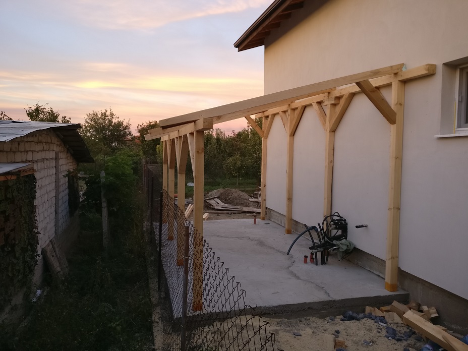 Имаме построена къща, която след 3-4 седмици ще получи нова изолация. Долепена до къщата трябва да направя допълнителна постройка, която ще играе ролята на мазе/склад (кирки, лопати, колела, колички, зимнина, термопомпа и т.н. Всичко това ще е вътре). Говорим за постройка с размери около 3x5м. Начина по-който мисля да я изградя е с фундамент, който ще е надигнат малко от земята, може би 15см. Оттам нагоре започва зидане с бетонни тухли. Колоните също ще са бетонни тухли (колонни) наляти с бетон. Отгоре бетонни греди и покрив с керемиди. Като ската на покрива ще тръгва от къщата и ми се иска да свършва точно на противоположната стена, така че улука да лежи на бетонната греда или да е малко след това. Причината е че тази стена е в съседство с комшиите.