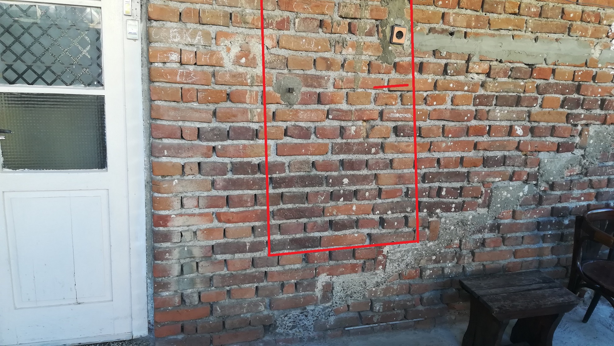 Значи да , ще има зидария между двете врати.Погледнато от вътре , веднага като излезеш от вратата в дясно , там се намира кенефа на 1-ви етаж. Искат да си го затворят и да имат и те врата за да излизат от там. Тази зидария която ще затваря двата входа трябва да започне от лявата страна на която ще е хваната вратата. Може би тя ще е точно там където свършва плочата до долу до първото стъпало за нагоре.Тоест там където свършва старата врата погленато от вътре в ляво то там ще има стена разделяща двата входа.