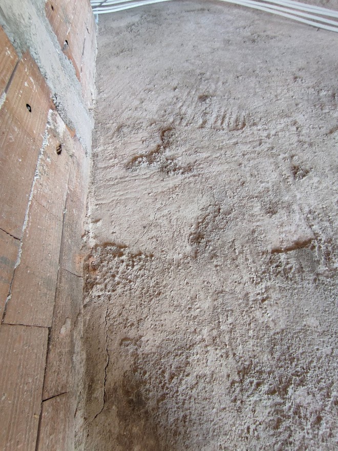 За съжаление отдолу не мога да видя нищо, защото е направена гипсова шпакловка и вече се ползва. Не се виждат пукнатини по тавана.
