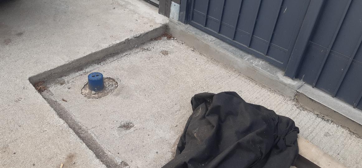 Искам да довърша тротоара с павета. Синьото е ТСК. То ще ми определи нивото на паветата. По сметки ще се движат около 2см над бетон в дясно. Той се явява рампа за гаража. Паветата ще следват неговият наклон.