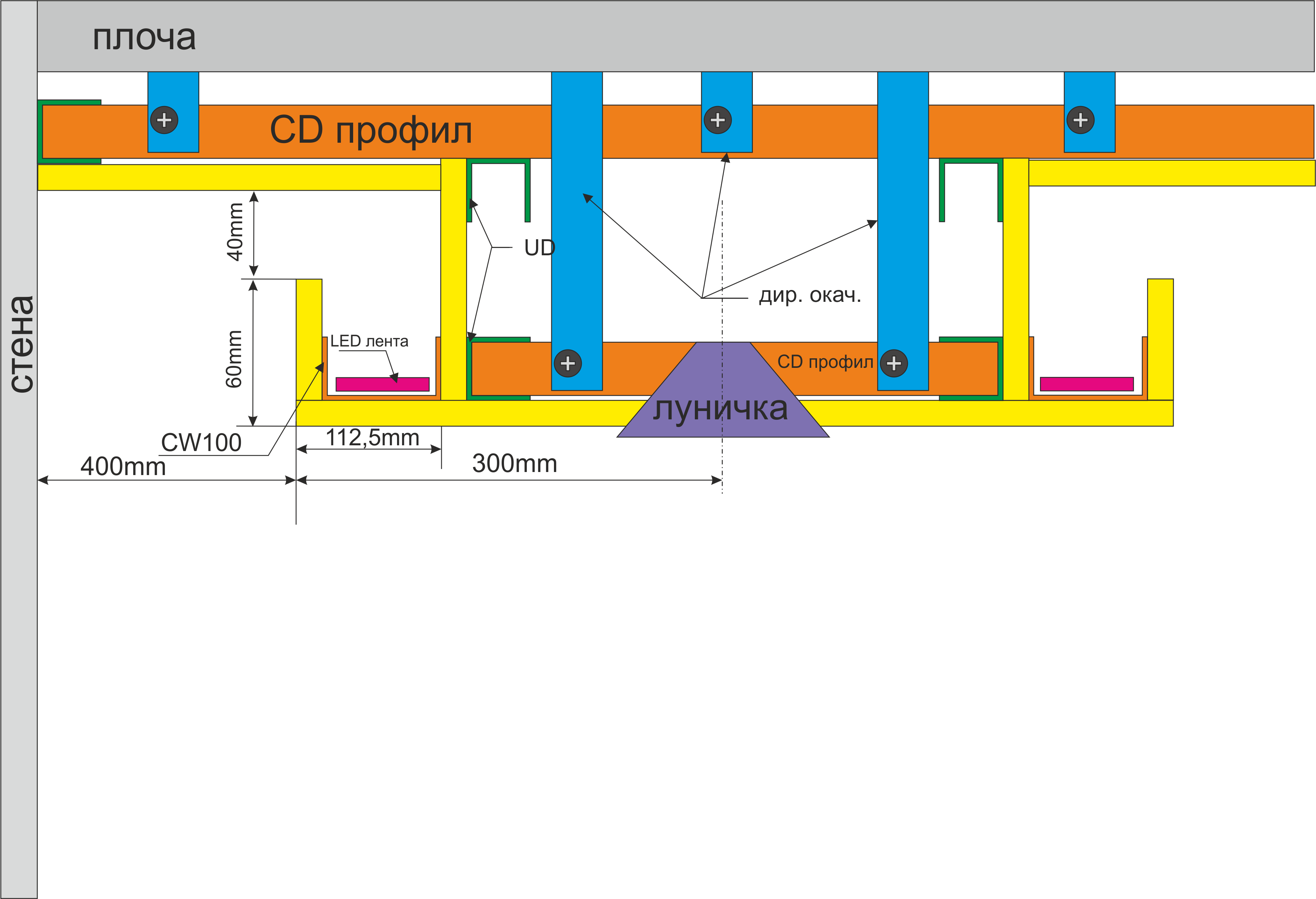 Преди да почнете да се смеете да поясня, че не съм майстор и не съм виждал как се прави гипс картон никъде, един колега само ми показа на един таван и направих три стаи и коридора остана само хола, но проблема са формите там, изобщо не съм на ясно, схемата в предния пост начертах как според мен може да стане, но явно не е рационално и евтино, за това моля да отделите 5 мин и да ми обясните малко по подробно, за размерите при лед лентите при какви разстояния ще се получи добро отражение. Аз прочетох за UW-75 и за CW100 ама каде да ги сложа не разбрах. Благодаря предварително!