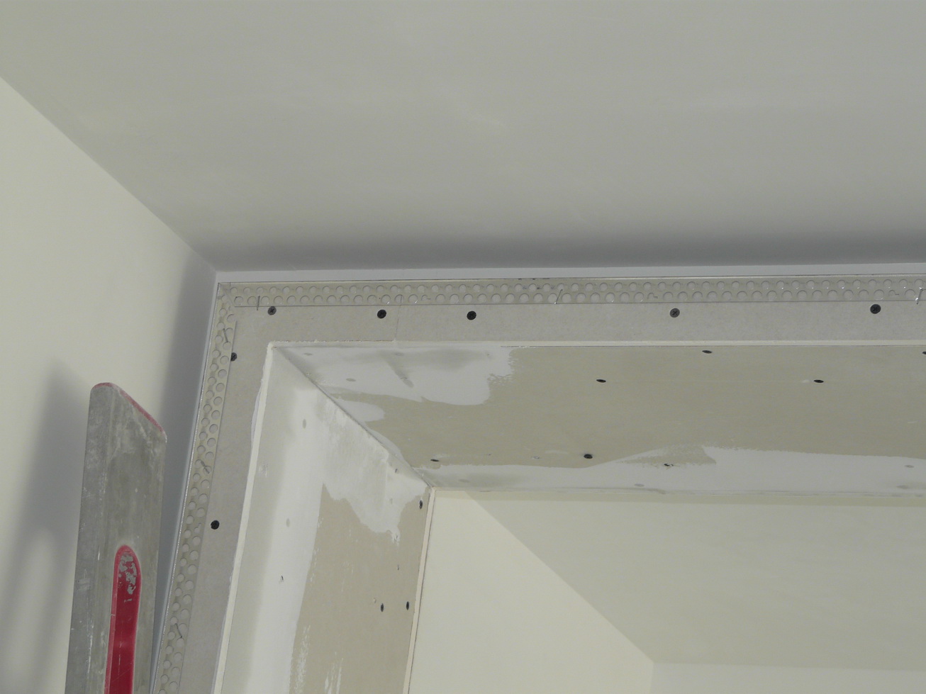 ако натова място има метал-после с хартиена лента - от двете страни на фигурата ако има завършващ алуминиев профил за шпакловка с прилично количество шпакловка