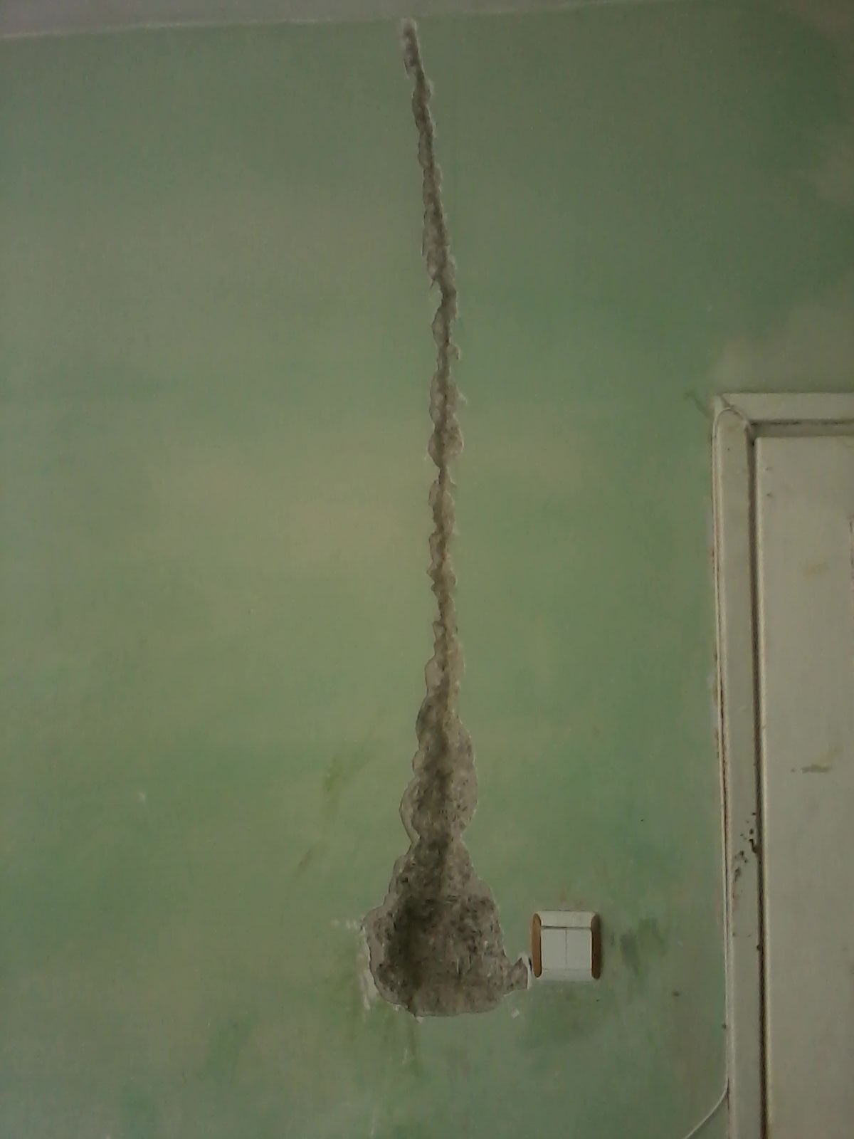 МИслех ме кабелите отиват към тавана и къртих най горе но намерих някви тръби но не и кабели.После решех да ги проследа от розетката и тръгнах да ги търся но се оказа че минават край касата на вратата но всичко приключи добре за сега измислих плана къде ще е захранването и от къде за минават кабелите.Интересно ми е че проводниците са директно замазани в мазилката.
