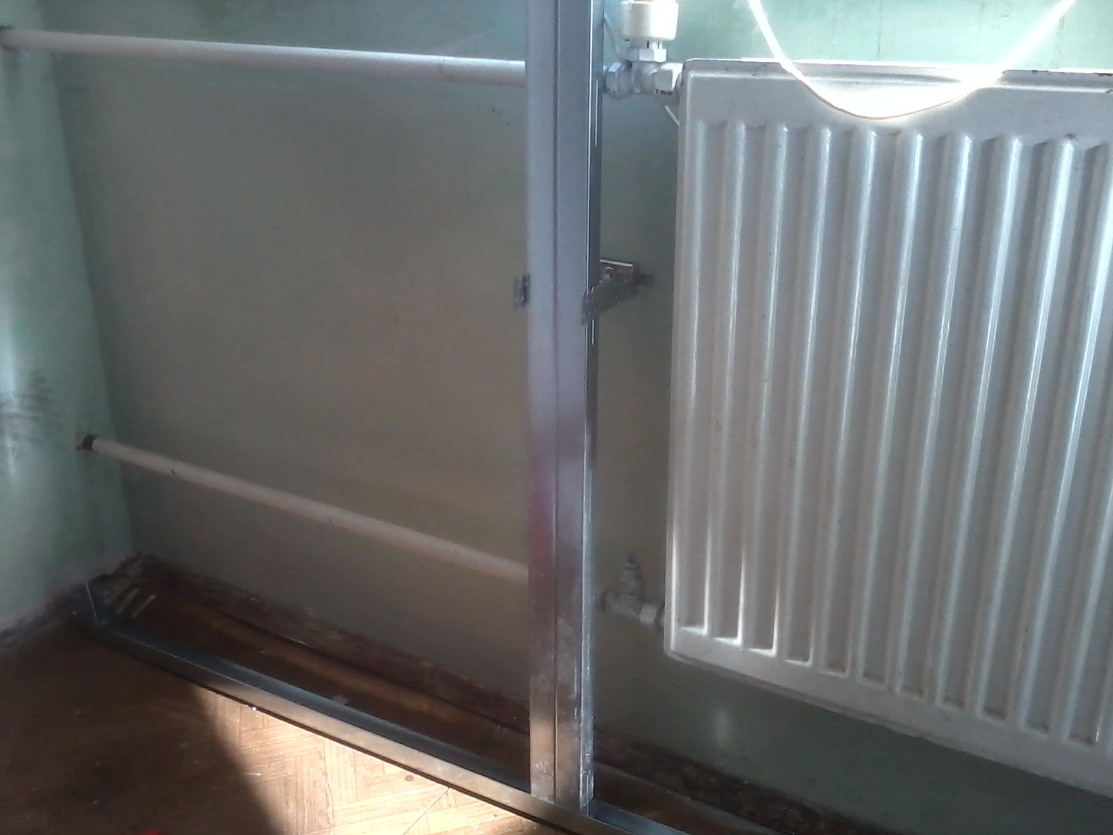 днес копая канал за кабела на димера.И имам едно затруднение.Ще махна радиатора и искам да направя стената от към прозореца с гипскартонени плоскости както тавана,но нещо конструкцията от профили ме затруднява след малко ще пусна няколко снимки за да стане по ясно.