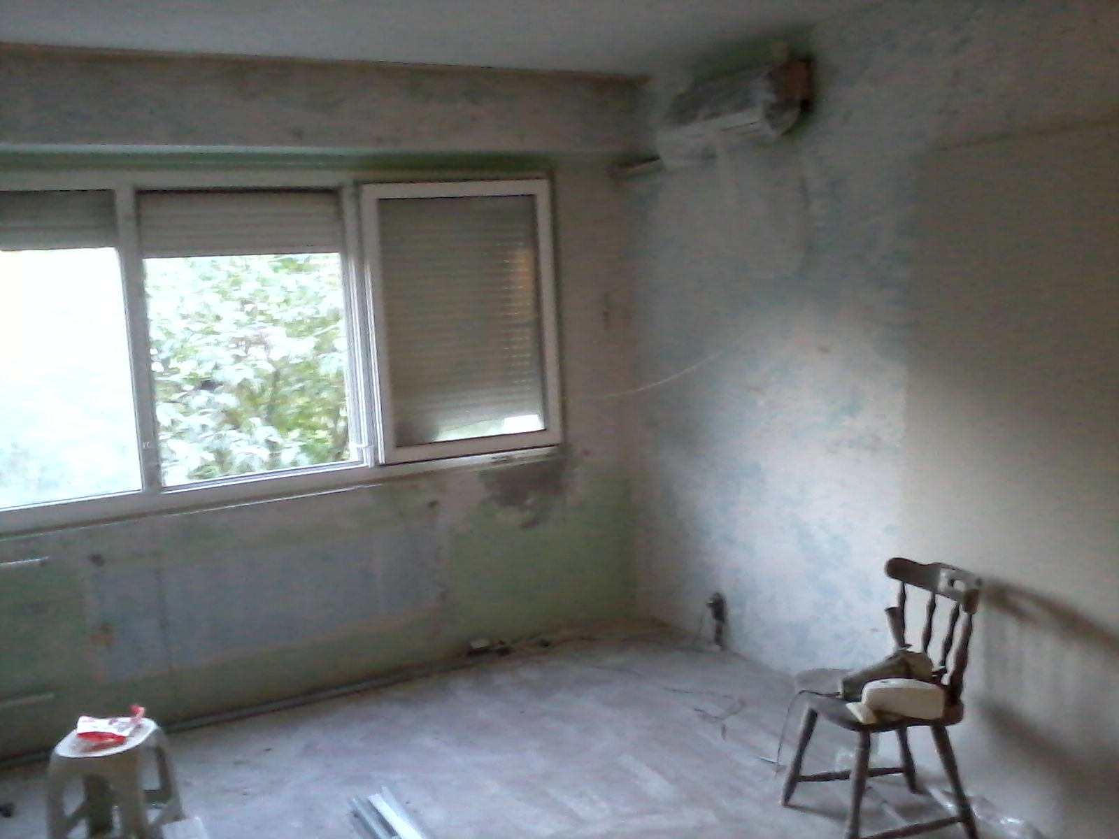 ПРеди стаята първо е била в синьо после бледо розово и сега зелено аз изстъргах до синьото но после с каква смес трябва да я замажа/шпакловам.