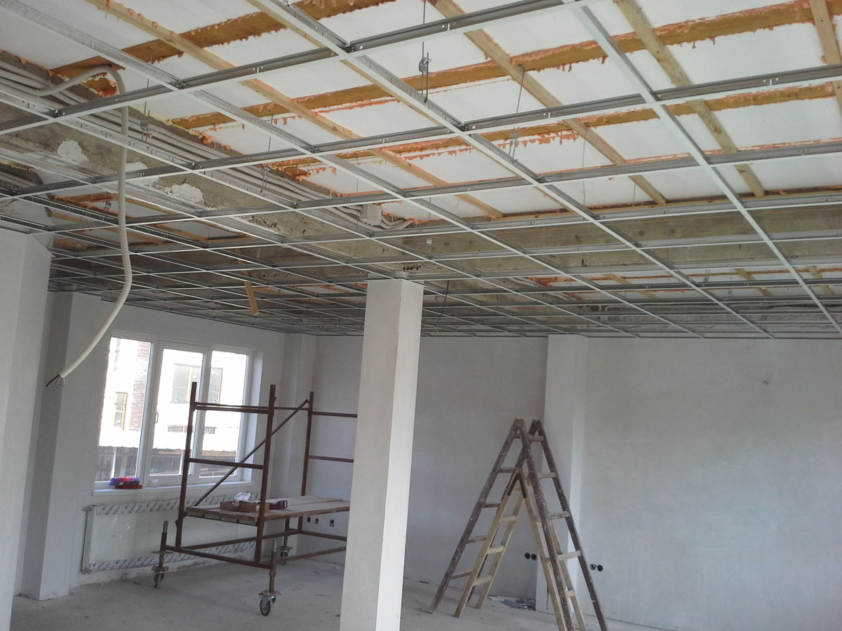 Здравейте Колеги, трябва да направя окачен-растерен таван в помещение което ще се ползва за производство. Сухо помещение. Около някои от стените ще има рафтове до тавана така че правилното центриране на таване не ми е приоритет. Търси се максимално добро съотношение цена-качество. Спрял съм се на AMF тавани 600х600мм. Прочетох доста в форума но имам няколко въпроса. Надолу съм пуснал схема на конструкцията на тавана която би трябвало да се изпълни според мен. Ако имате други предложения ще се радвам на насоки. Помещенията са две свързани с врата която е на късата страна на молкото помещение. Искам като се отвари вратата да не се разминават линиите на двата тавана. Правилно ли съм съставил плана, може ли да се оптимизира? Жълтите линии са стените, покрай стените има колони както и 2 колони по средата. Червените са главните носещи, тъмно сините са напречните 1.20 метра, а светло сините са напречните 0.60 метра. Външни габаритни размери на помещенията - Х-9.45 метра Y-7.42 метра