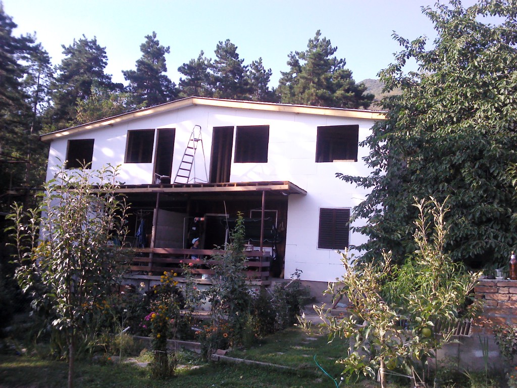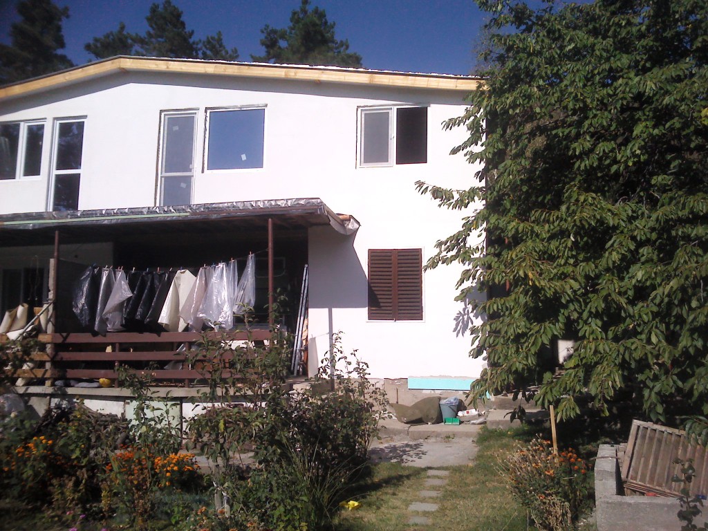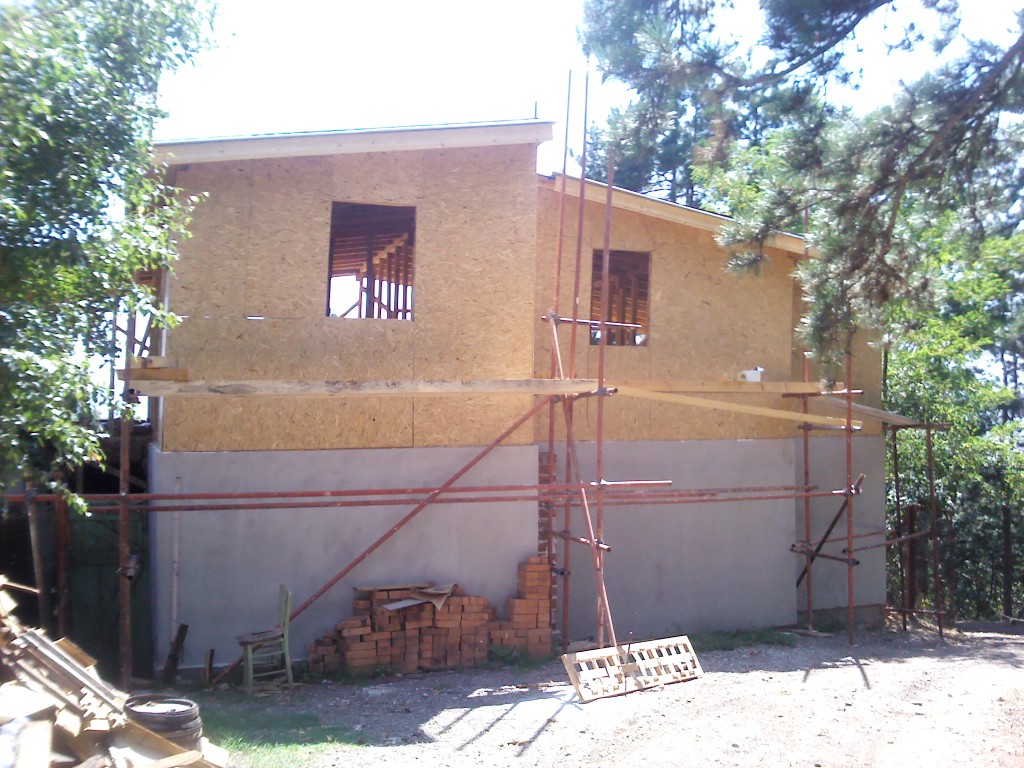 Вилата е Английски тип с греди 8/8, 10/12 и 6/12 от вън е с OSB 11 и стериопор 3см + шпакловка