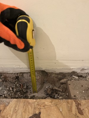 Искам да сложа трислолен паркет върху под от много старо дюшеме. Днес го разрових и прикачвам снимка.