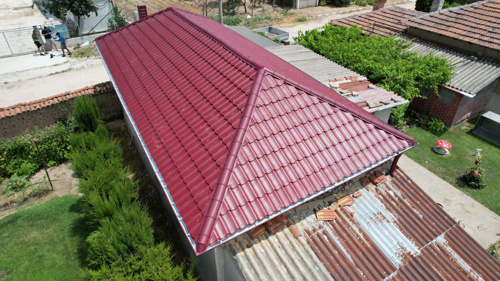 Виждам че притесненията ти идват от непознаване на матерята, нормално. Да бъда конкретен. Декофриране на бетон не се прави и не е препоръпително преди 28мия ден, когато той добива якост на натиск, това е цитат от учебниците по стоманобетон! Тази централна спрямо къщата, да речем греда се явява котва, тази котва ако при разлюляване и то голямо изпусне къщата 1/5 от сградите в странара ще са... Който т ги е правил има ъкъл в главата. Еединственото упасение е да не е достатъчно добре армирано в което по подхода се съмнявам. Минеш ли на метални или битумни керемиди, това ще надживее и пра внуци.
