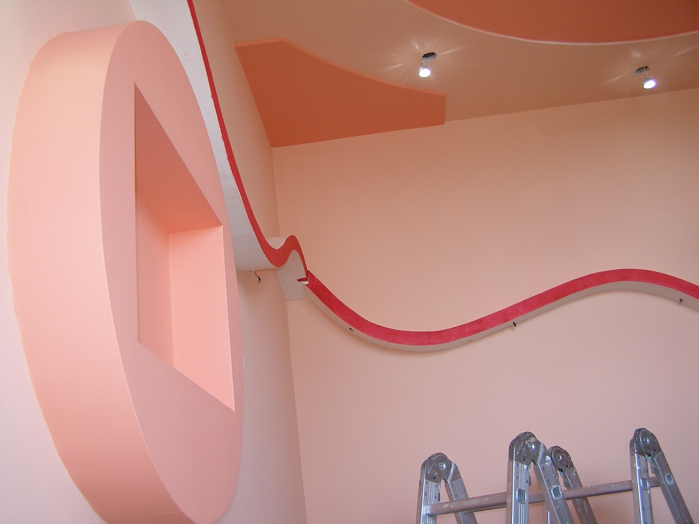 Малко снимки от обекта който правя в момента , проекта ( вижда се на снимките ) е на Веско oт DBS с леки промени от мене .Скоро ще го има в завършен вид .Клиентите ми гласуваха 100% доверие и ме оставиха да решавам за осветлението , боята и формите по стените .
