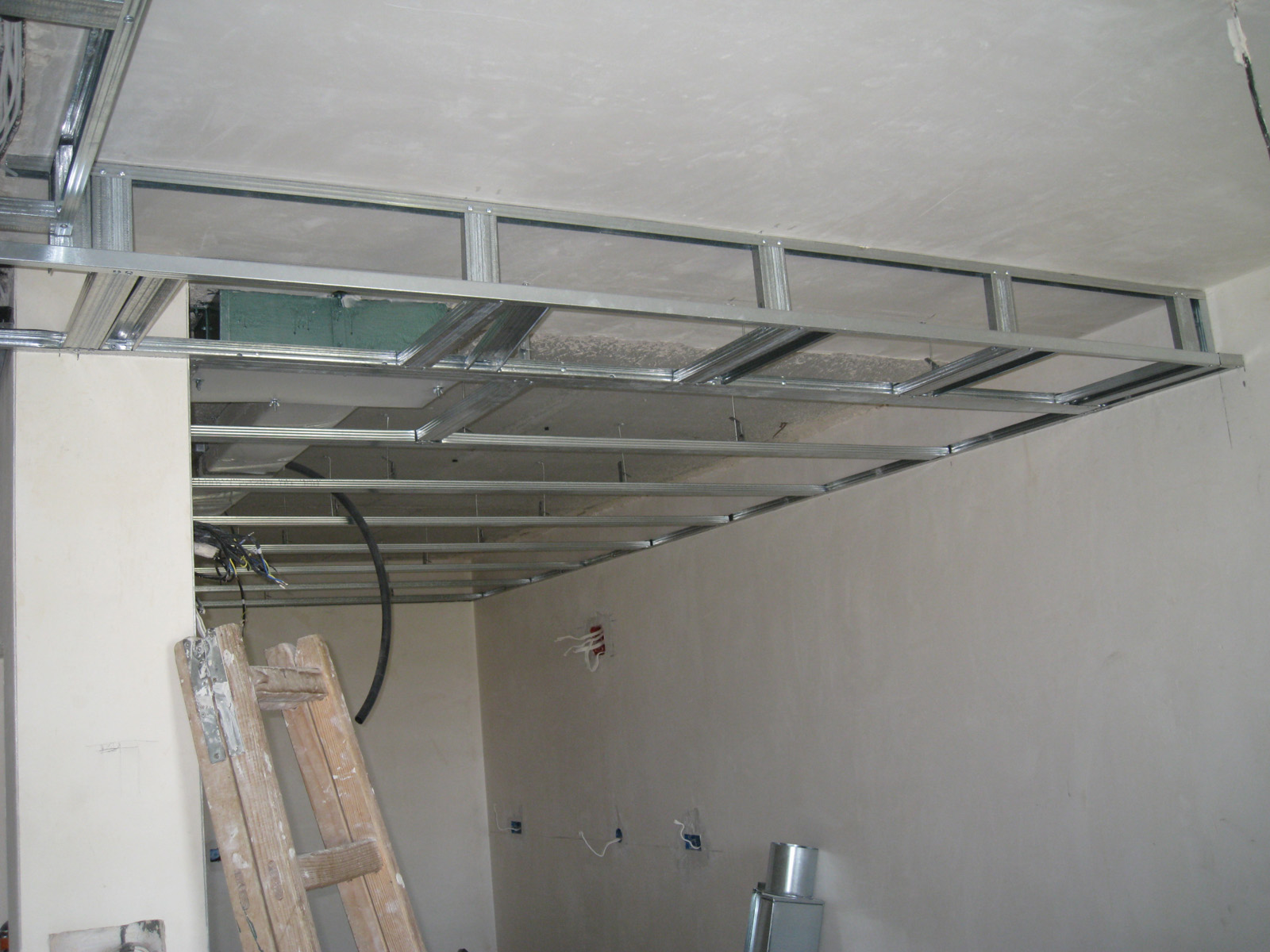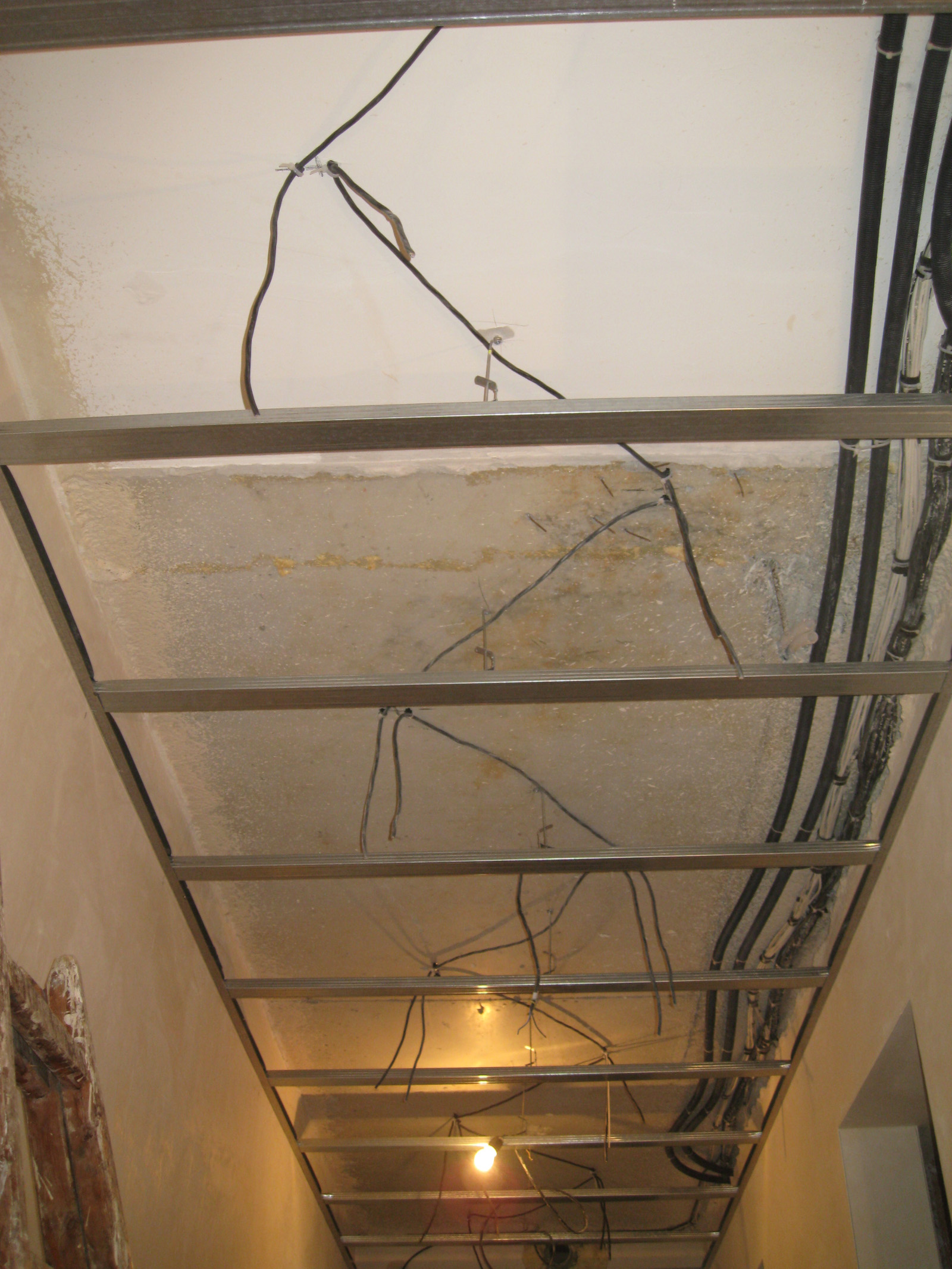 Конструкция в коридор с широчина 110 см. CD-та по периферия и UD-та през 50 см. По един окачвач тип кука на всяко UD.
