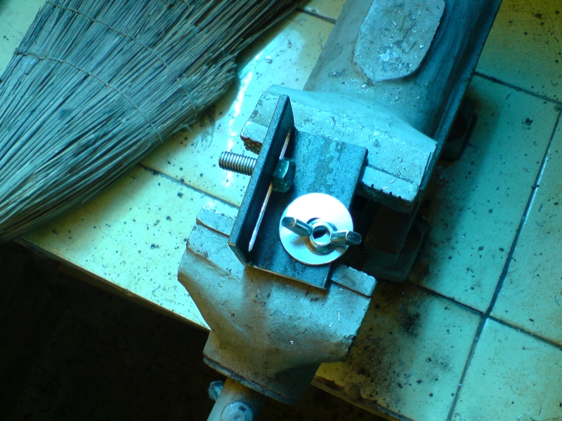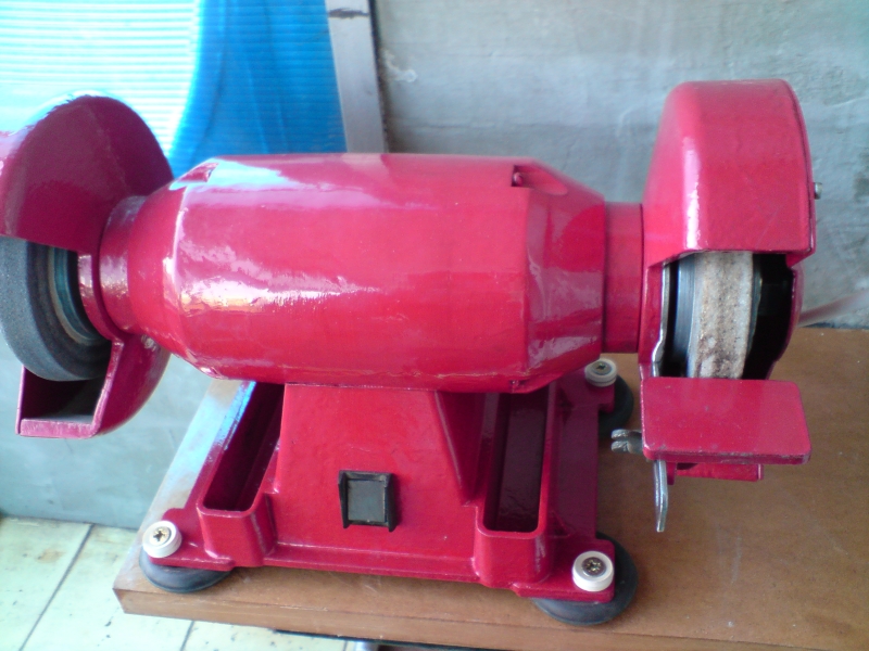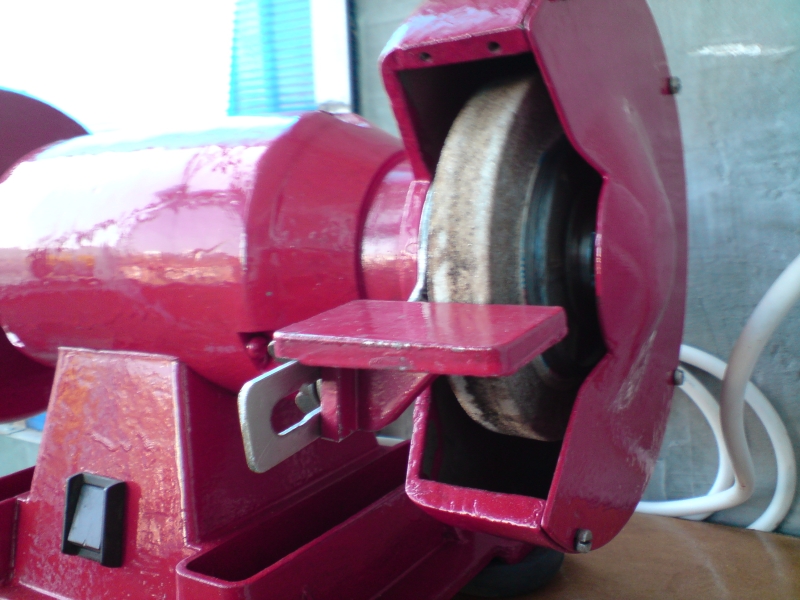 :partyman: Ето ти една идея за подпора. Пазарих от битака един предпазител като за твоя шмиргел. Пасва на същите отвори, но е малко по плитък, та се наложи да пробия отвор на външната ламарина за остта. Става и за длета да се точат грубо с малък ъгъл. Отана ми излишен предпазител, ако има някой мераклия :arrow:
