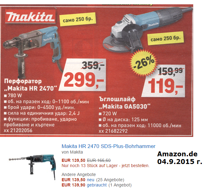 Давам сериозни сайтове - там цената за макитата по-днешния курс е 194.23 лв.