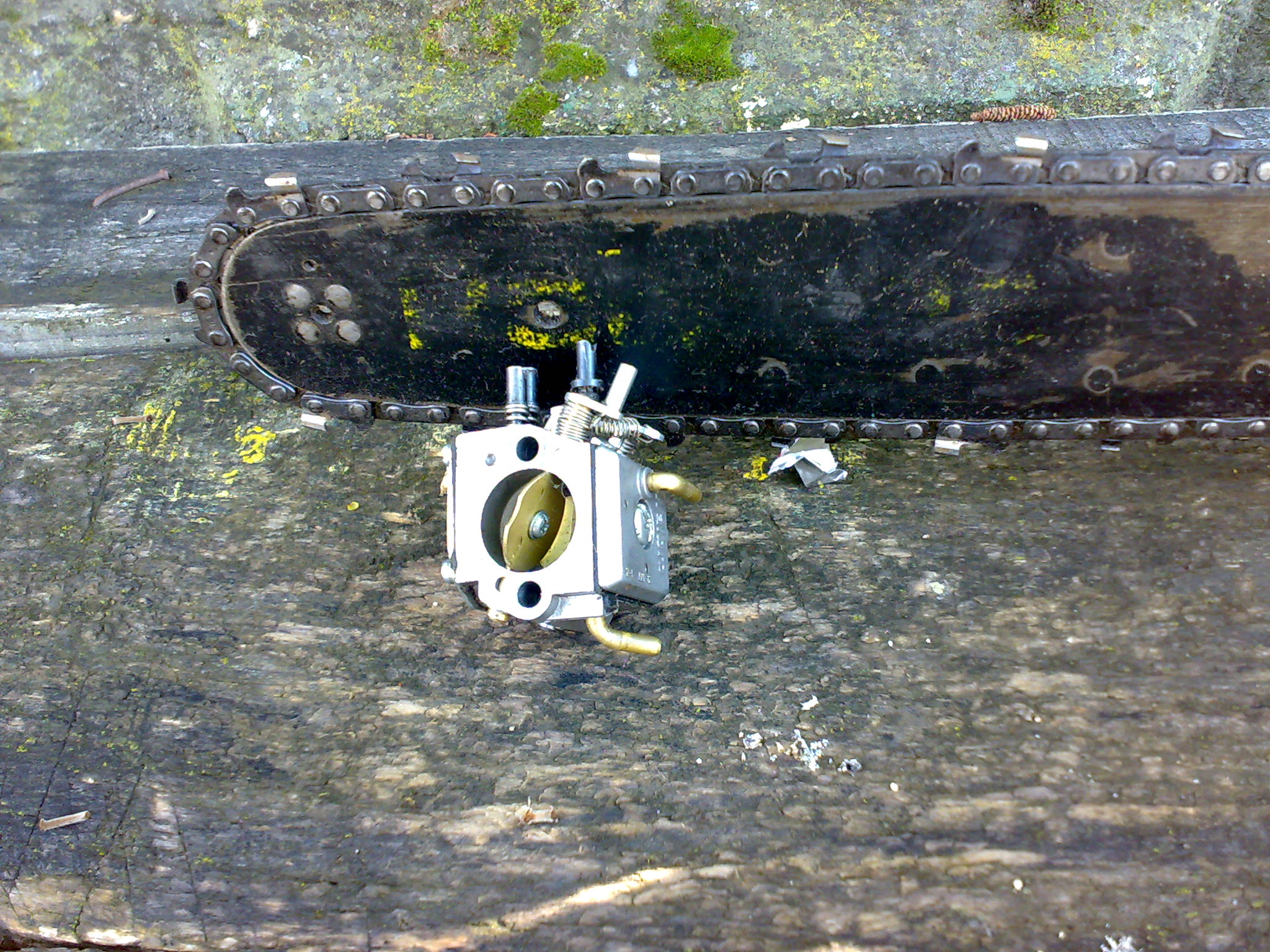 Ще продължа същия пост,за да не ставаме разточителни.Карбуратора който са ти подарили е от Stihl 290 56.5куб.см. 4.1 к.с. Не знам кой е успял да умори тази машина,че и да и подарява частите,но това е все едно да подаряваш часи от S-Classe на Мерцедес...Щом си успял да го монтираш и да вържеш привода на газта,този карбуратор със сигурност трябва да свърши работа за твоята машина,защото не е по-малък,а по-голям от нужното за нея,но е нужна съвсем друга регулировка.Може би ще ти изпратя материали на лични,защото няма никак да са кратки обясненията.Остава да ми кажеш дали разбираш руски,за да не ги превеждам.