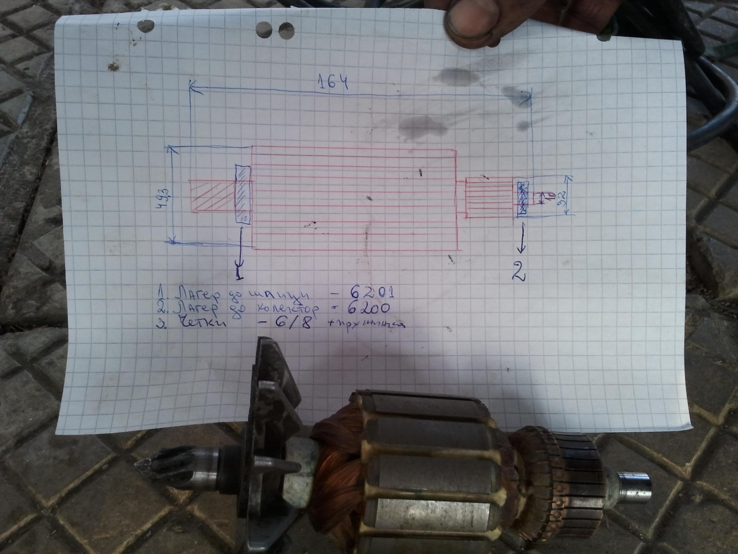 Здрасти тази гимнастика съм я правил с една резачка. Стругара трябва да е МНОГО добър. По средата на лагера се прави свръзката с новото парче. На оста на ротора се прави външна резба а на парчето със зъбите вътрешна. Ще си прецените колко дълбока и с какъв диаметър за да остане цяла като се нарежат зъбите. Стягат се двете части и се запояват със сребро. Посоката на резбата е такава че да се затяга когато работи машината. След това с часовник се центрова ротора и се уточняват диаметрите на леглото на лагера и външния на зъбите. После отиваш във фирма която нарязва зъбни колела - аз отидох в Радина Пловдив доволен съм как го направиха. После отиваш на ТВЧ в Пловдив има в Механото. Това е общо взето - стругара трябва де е перфектен за да ти направи добре присадката, зъбонарязването да си спазят най-вече ъгъла на наклона и накрая ТВЧ-то. Мисля по-добре ще е ако се изработи нова ос и се набият наново магнитопровода и колектора и се пренавие наново - така ще е най-добре но и цената ще се оскъпи с 60-70лв за пренавиването. Пиши да ти дам координати на много добър бобиньор в София обаче - но работи и с куриер.
