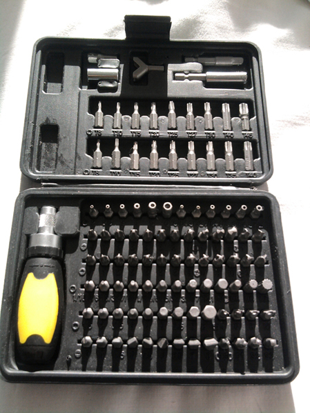 Не си вземай с тресчотка, качествените такива са скъпи и в коплект с толкова битове ще излезне златна. Евтина тресчотка не е работа щото се разпадат за нула време. Вземи си фиксирана отвертка за битове и отделно комплект битове каквито решиш стандартни има и за специални винтове "секретни" Имам един комплект 33бр. секретни на FORCE взех го за 14лв и отделно отверка от същата марка. Битовете са добре но от отверката не съм доволен - падна и магнита още на първия по голям винт. Пробвал съм с няколко други марки и за сега учудващо държи най добре най евтината на Топмастер която намерих.