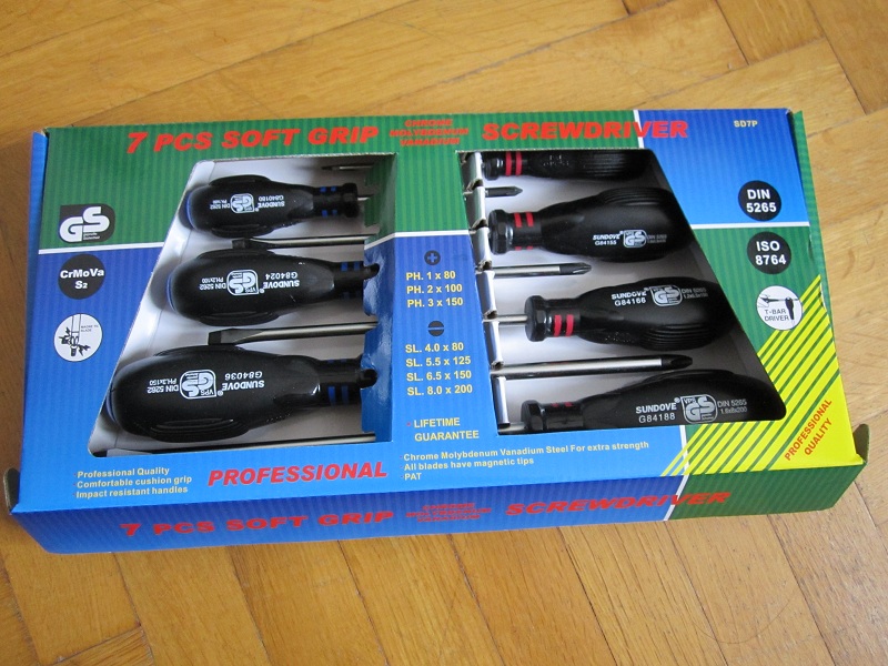 Комбинирани клещи-15лв. Работна лампа-16лв. Комплект тайвански отвертки за 36 лв. уж професионални... :-D Ще ги размажа от джелатско ползване :-D Дръжките им миришат на каучук като гуменки :lol: