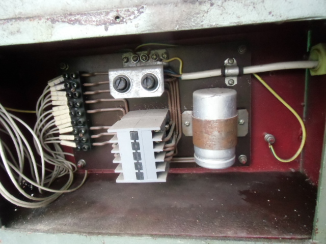 На снимките се вижда един превключвател S 800 (големият, лицензен на "Шалтбау" (малките бяха S804)). Да не би да е елиминиран (електрически или механично)? Би трябвало, като направи един цикъл - да спре, до следващото, ново натискане на стартовия бутон. На третата снимка се вижда палец между редуктора и зъбното колело, който вероятно трябва да натиска кобиличната ролка на превключвателя. Когато зъбният сектор на венеца излезе извън галовата верига, тогава стерженът пада и би трябвало малко преди новото зацепване палецът да натисне превключвателя и двигателят да спре. Втората и трета снимка се различават по фазата на цикъла (положението на зъбния венец). В този си вид освен за задвижване на ковашки мех... май за друго не става. Редукторът ще да е червячен - на Бяла и може да му се търси приложение заедно с двигателя. Примерно - да върти барабана на някой бунар или за малка лебедка. При непрекъснат цикъл става за тепавица, за лостово задвижване на ковашки чук, за сплъстяване на кече или..., ако се направи отвор в дъното на корпуса и се сложат колела, като същевременно се удължи стержена - за машина за трамбоване. :)