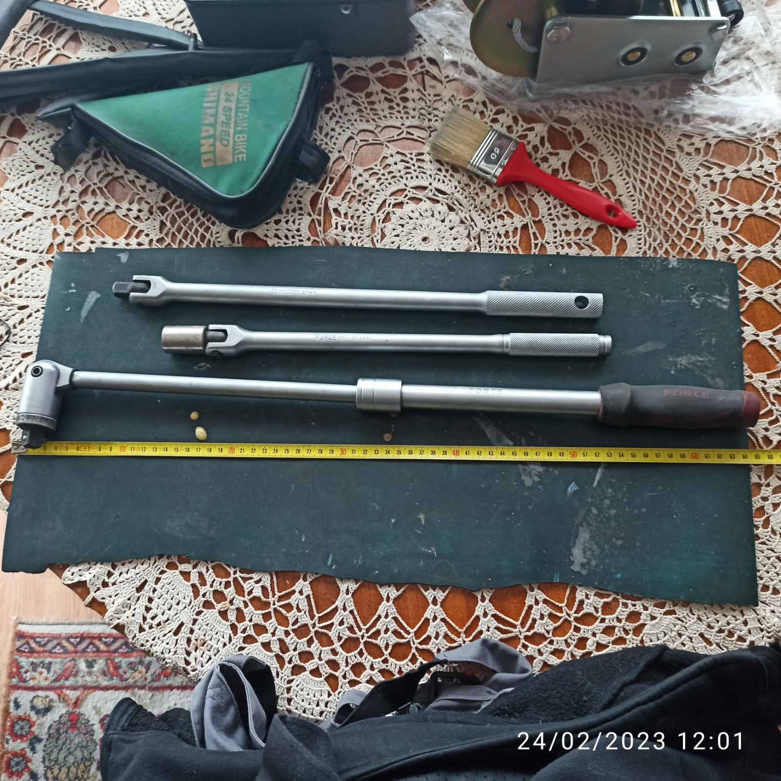 Не знам на каква кола си, но на шарана с тези ключове от снимката, успявам да си развия централния болт на външното каре без проблем. Усилията са същите. Форсето разтегателното е с тресчотка с 24 зъба. С най малкия съм ползвал тръба, после взех по дългия, с него съм развивал без да удължавам. Но последния който взех на Форсе е много удобен като съм наврян под колата и нямам височина да нагласям другите на камъка.