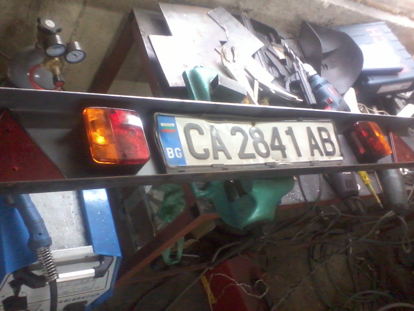 Рамата от 3/4 тръба,джанти и гуми от електрокар,коша от 10мм шперплат,тръбата на теглича беше от някаква кранова конструкция и е удебелена.Теглича беше оригинален немски за трабант,светлинните сигнали от битака-от страни и от зад.