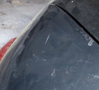 И на последния въпрос за лекуването от градушки да точно за това се представя най добре. Както писах по горе едната ямка голямата е от врата. При нея няма спасение щото боята е наранена но ако се прави по който и да е начин без кит няма да мине. А малката е от удар с глава. едно дете на двора се блъсна с колелото там. най обикновенно хлътване без разтягане на ламарината. Те снимките са ми много заблуждаваща но колата е мръсна до безобразие и тези белите черти са от солта и химикалите по пътя. Таман бях се прибрал и врътнал към 500 километра по магистралите. Повече беше бяла от колкото черна както е оригиналната боя.