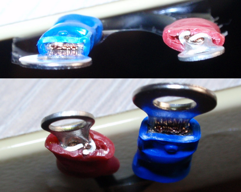 Въпроса е правилно да се подбере размер на обувката и да се кримпне с правилният размер на клещите. Има вълнообразна преса за кабелни обувки и дъговидна в няколко размера за тръбни изолации. Има и три цветни точки които указват кой е правилният размер и надписи с размерите на кабелите. Но и аз много не мога да схвана тези цветни точки какво точно казват.