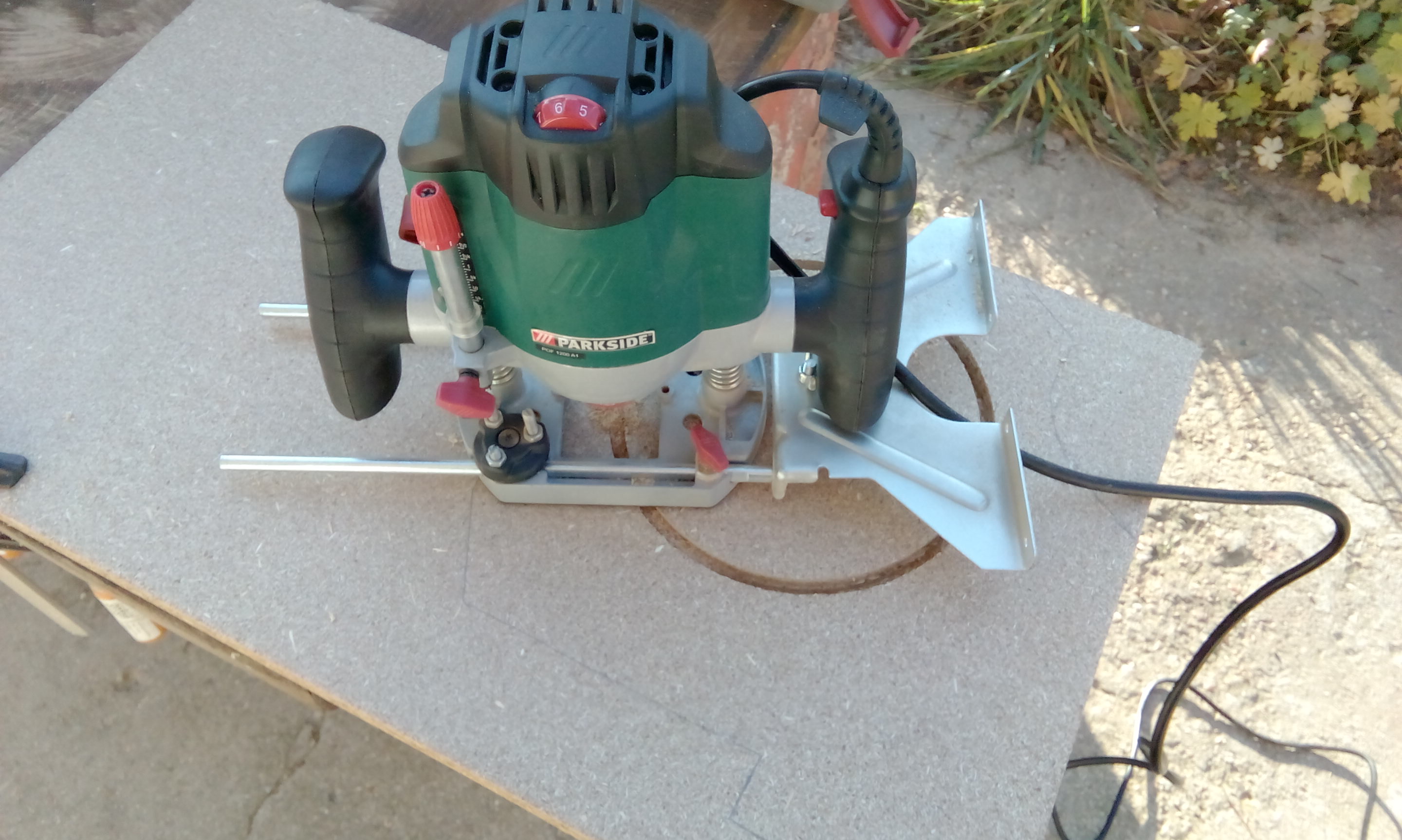 Оберфрезата е Ок за парите си, много непретенциозна и с достатъчно вибрации, за да ме откаже да я ползвам ръчно, затова ще бъде монтирана стационарно (което беше и първоначалния ми замисъл). Недомислица е, че бутона не може да се задържа в положение включено, без да трябва да си държиш пръста на него, но това лесно се превъзмогва със една свинска опашка.