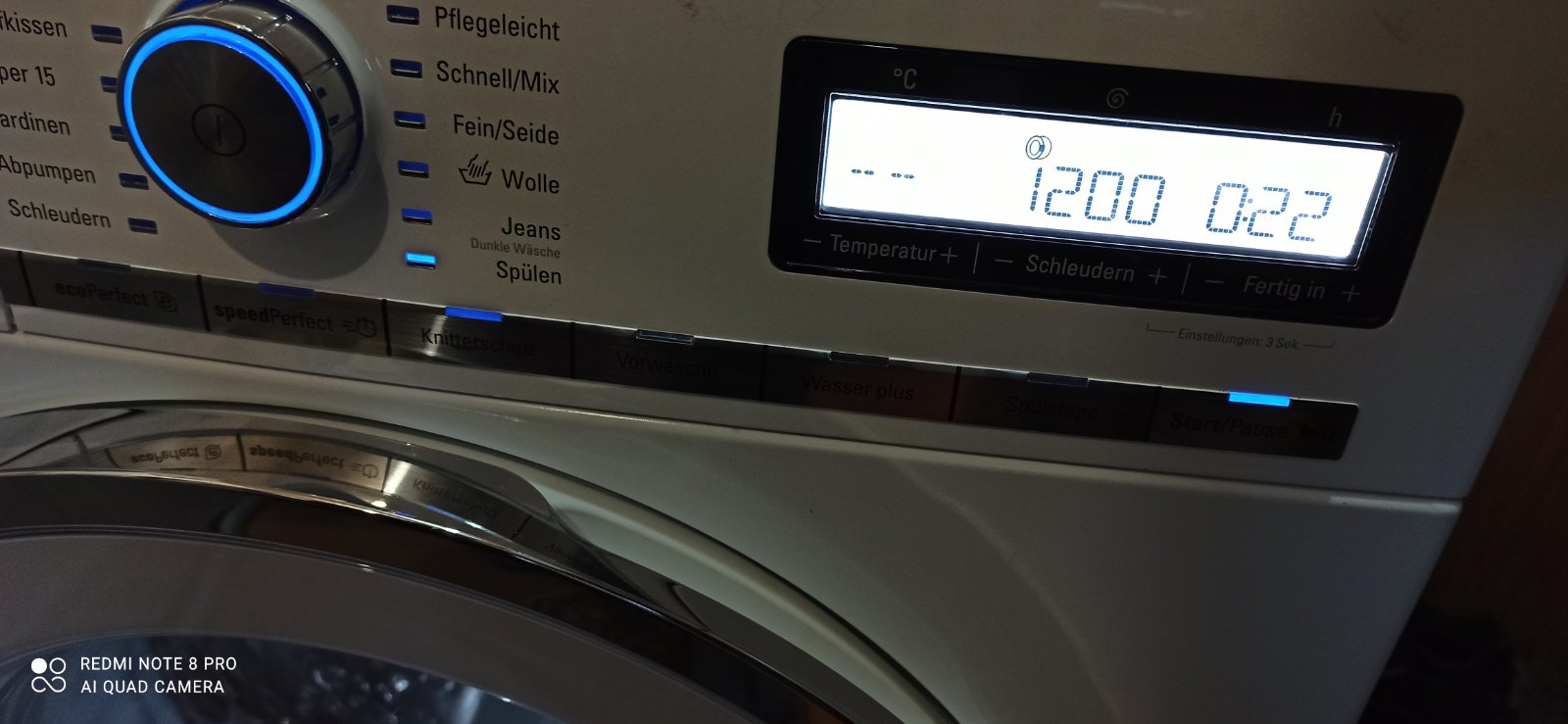 Здравейте,наскоро се сдобих с въпросната пералня,един приятл ми я донесе от Германиия ,като я включа светва дисплея,ибирам произволна програм ,бутона [старт пауза] мига но няма реакция като го натисна,по точно никой от бутоните не може да се активира,само мога да избирам програми които изписва на дисплея ,Не изписва грешка !