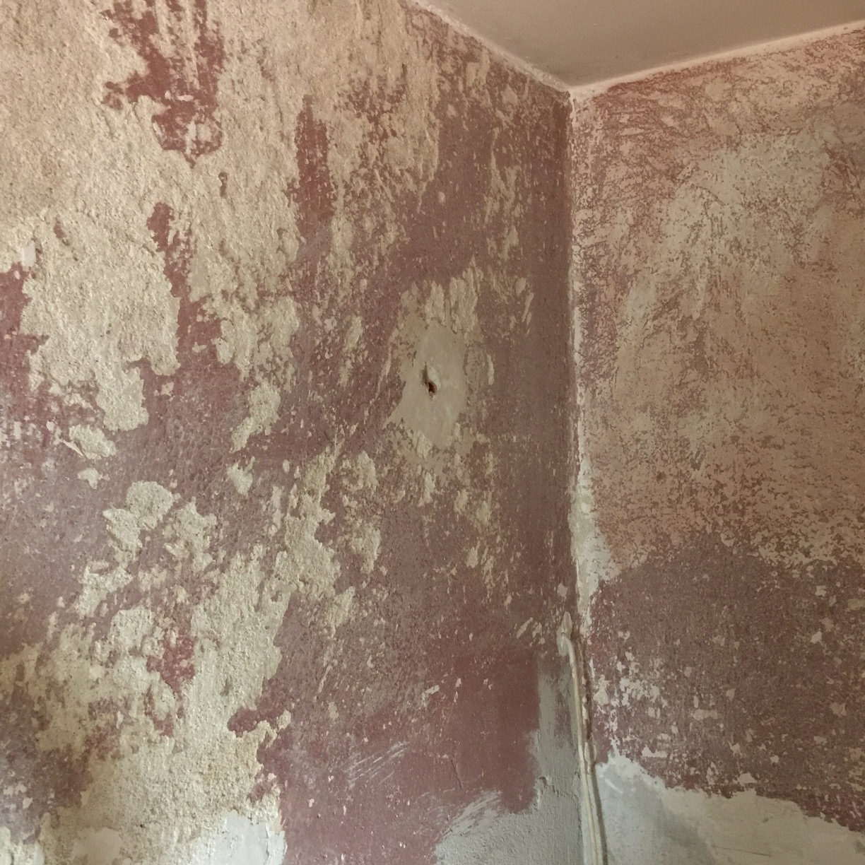 Ето как станаха стените, след като изстъргах старата боя. Стана с шпаклата и много натискане, а там където на падаше лесно нанасях от препарата за боя. Според вас така готови ли са за грундиране стените, преди да мина към слой шпакловка, мрежа, слой шпакловка?