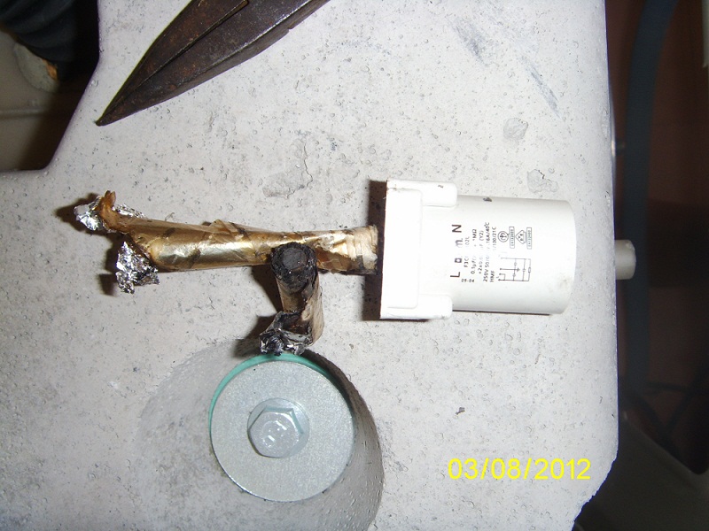 До тук системата е "хризантема - синджира си иде, козата я нема!" както казва един колега от форума. Кондензатора е здрав! Днес го премерих - зарежда, разрежда всичко е 6. Отворих и горния капак на пералнята - почти нищо :-D само едно такова изгоряло. Утре съм на пазар ама се съмнявам да е от него.