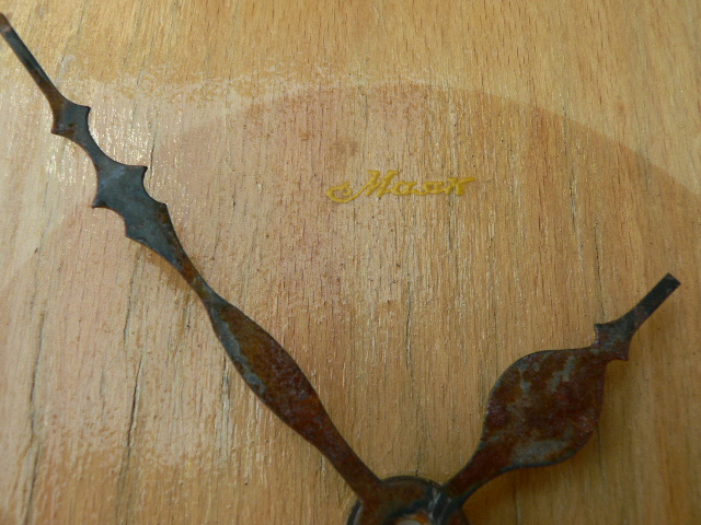 Стенният е с неизвестна марка,разглобих кутията,почистих с въздух механизма,навих го и няколко дни корегирах хода,защото изоставаше,не е работил поне от 20 г. а е произведен на 10.12. 1956 г./малко е размазано,но това е датата/ ,ето снимки,ако някой знае ,нека напише марката:Това е затварящата задна част