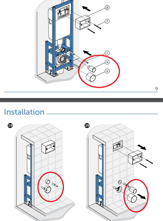На схемата, която прикачвам мисля, че тези двете са с обозначение U и V, които се слагат на мръсната тръба и на тръбата за чиста вода от казанчето, но не ми се връзва, защото на дъното на двете пластмасарии отроа не е цял, а има по два отвора, които са около ф15-20, крайно недостатъчно да си тръгне от там каквато и мърсотия. Това някакъв шаблон ли е при рязането на гипскартон или нещо подобно. Не съм вкъщи, инак ще кача изображение и на самата част. По-малкия цилиндър седеше в плика с тръбата, която влиза в тоалетната чиния за чиста вода.