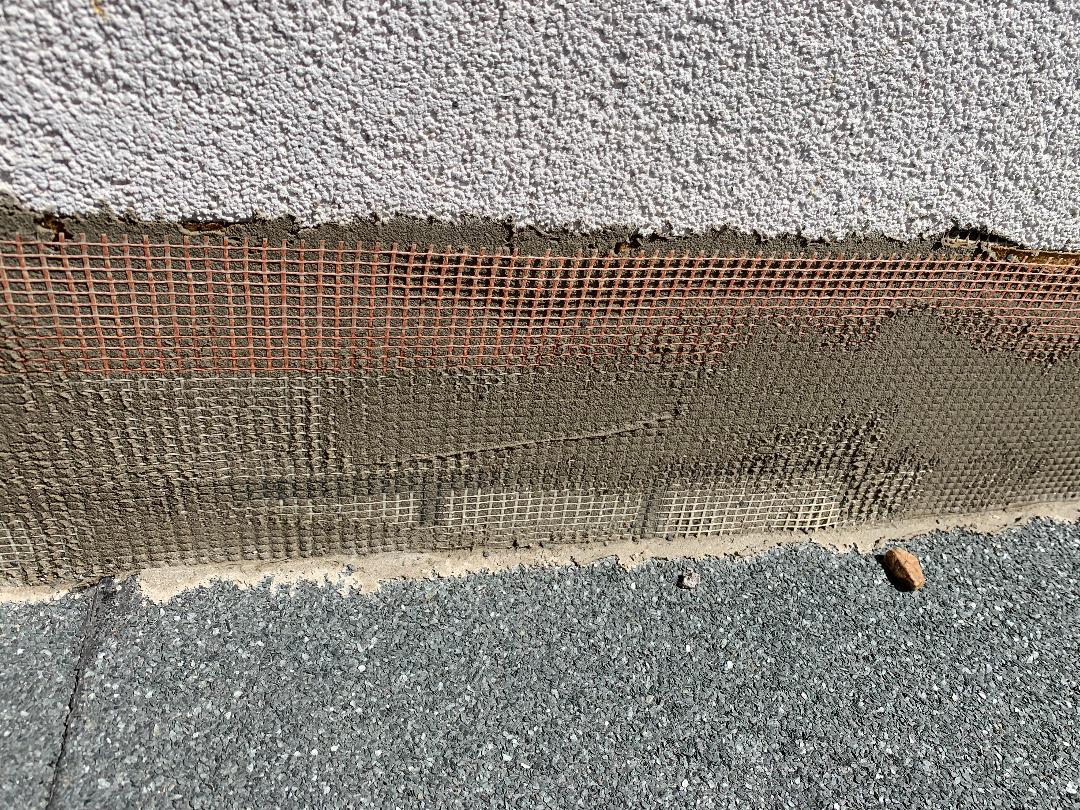 Свържи се с надзорната фирма, прати им снимките и питай тях за хидроизолацията, как е изпълнена (щото това се води скрито СМР) и за завършените СМР, защото нещо е мислено да се добави (подлепка с хидроизолация, или ламаринена обшивка или специална мазилка за цокъл или :? ), а липсва.