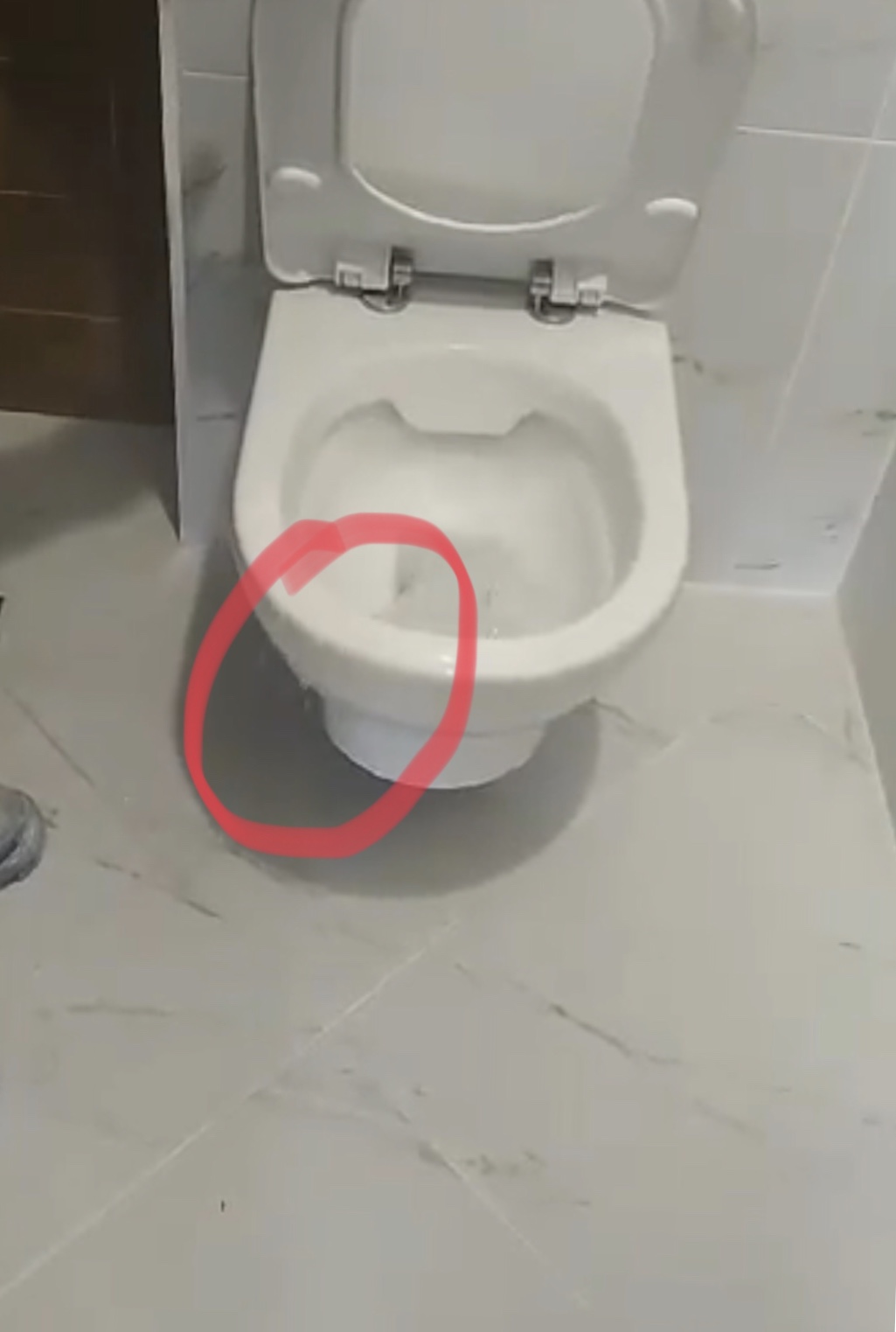 С голема вероятност някое уплътнение от входящата промивна или изходящата в канала вода не се е наместило правилно и от там изтича м-у плочките и чинията и вероятно част от водата се стича отзад към структурата ако не са уплътнени тръбите на структурата със силикон или пяна към плочките преди монтажа на чинията (цукала).