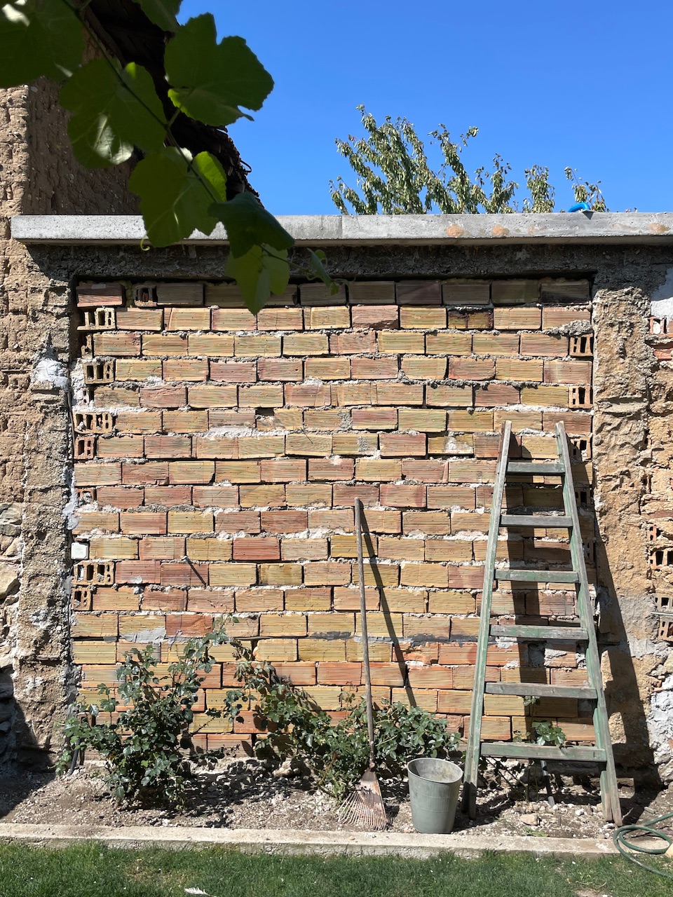 Да пусна малко арматура, да направя кофраж с височина 20-на см под козирката и да го залея, като ползвам по дребна фракция за бетона, а останалото до козирката - запълване с разтвор цимент-пясък?