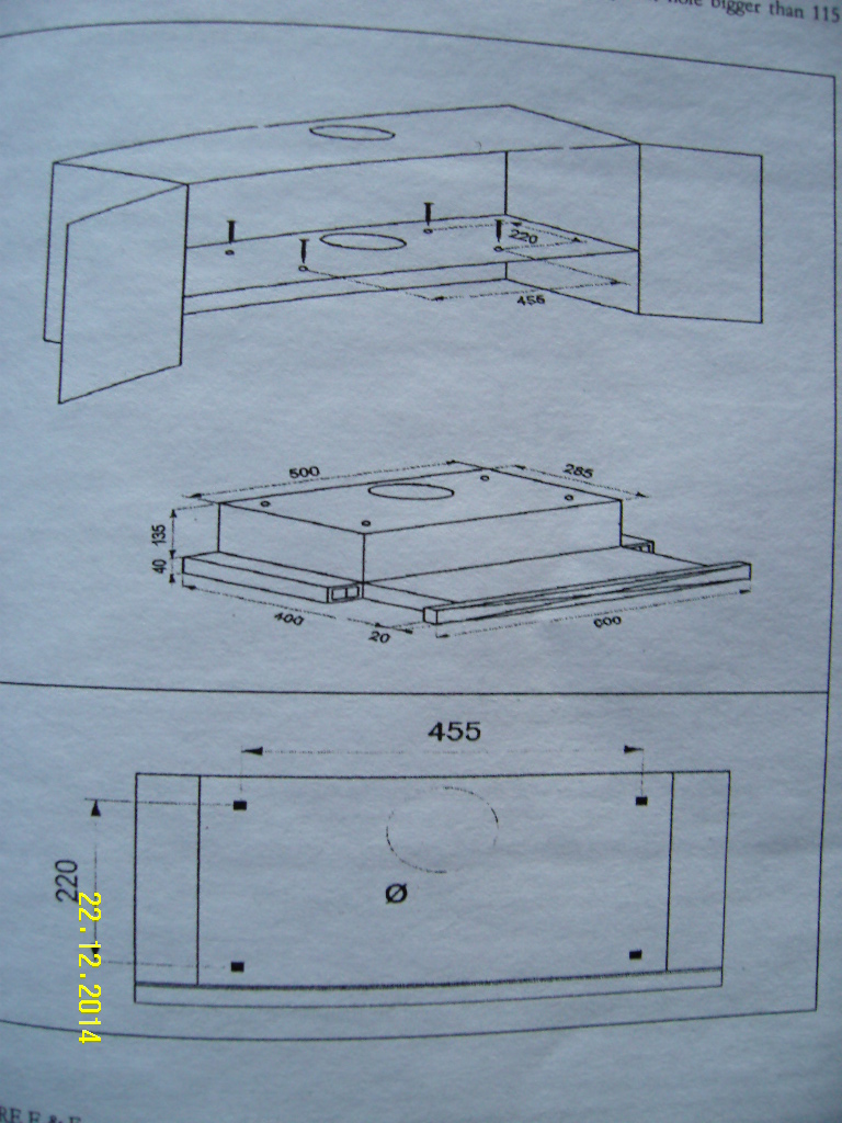 За предпочитане е да вземеш абсорбатора преди да започнеш да правиш шкафа, защото част от него се помества вътре и му се прави кутия в която да влезе, както и отвори за въздуховода.