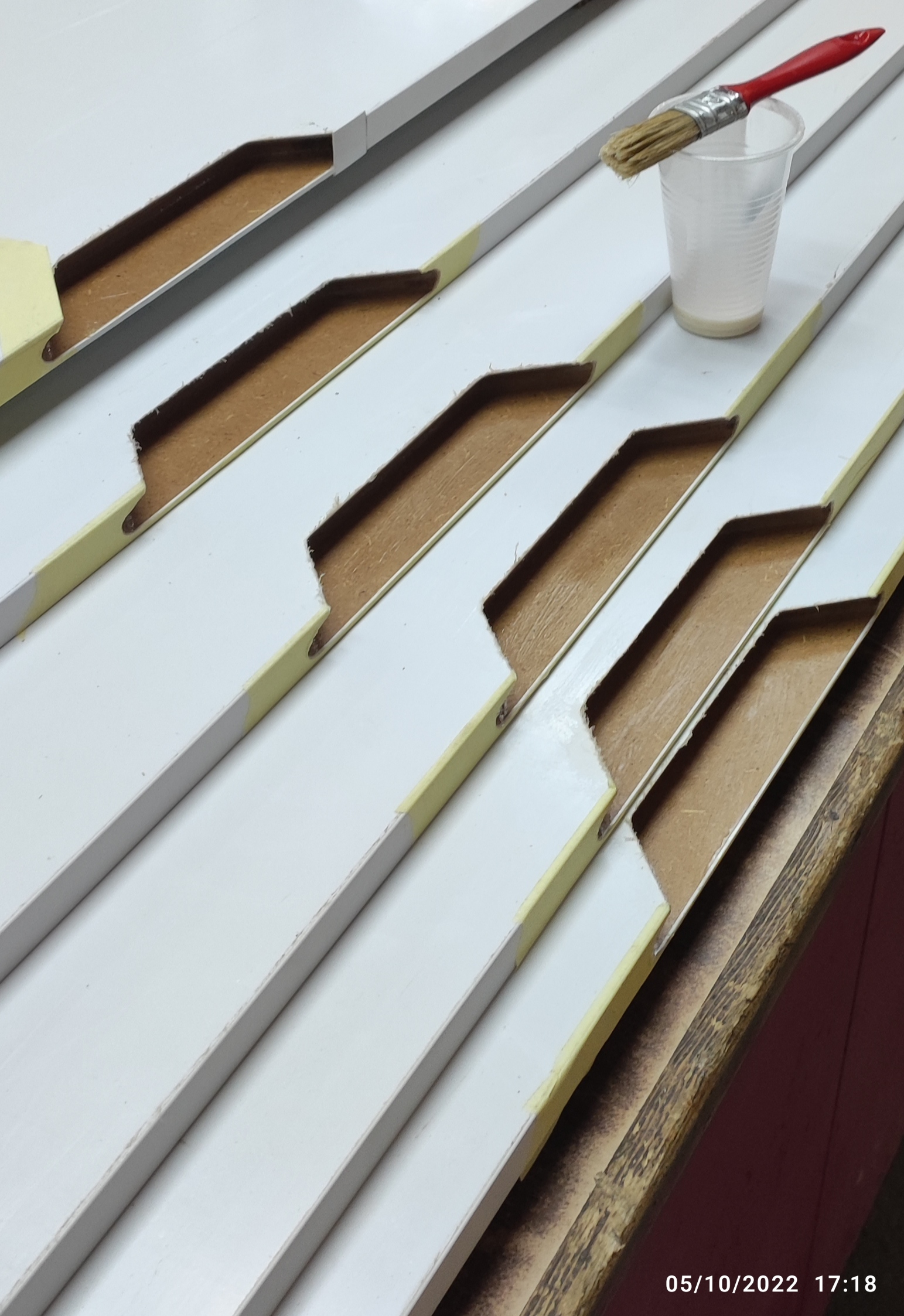 Ето и вариант със скосения. И двата варианта са с боядисан МДФ. С кантирано ПДЧ, за мен лично, не става толкова хубаво.