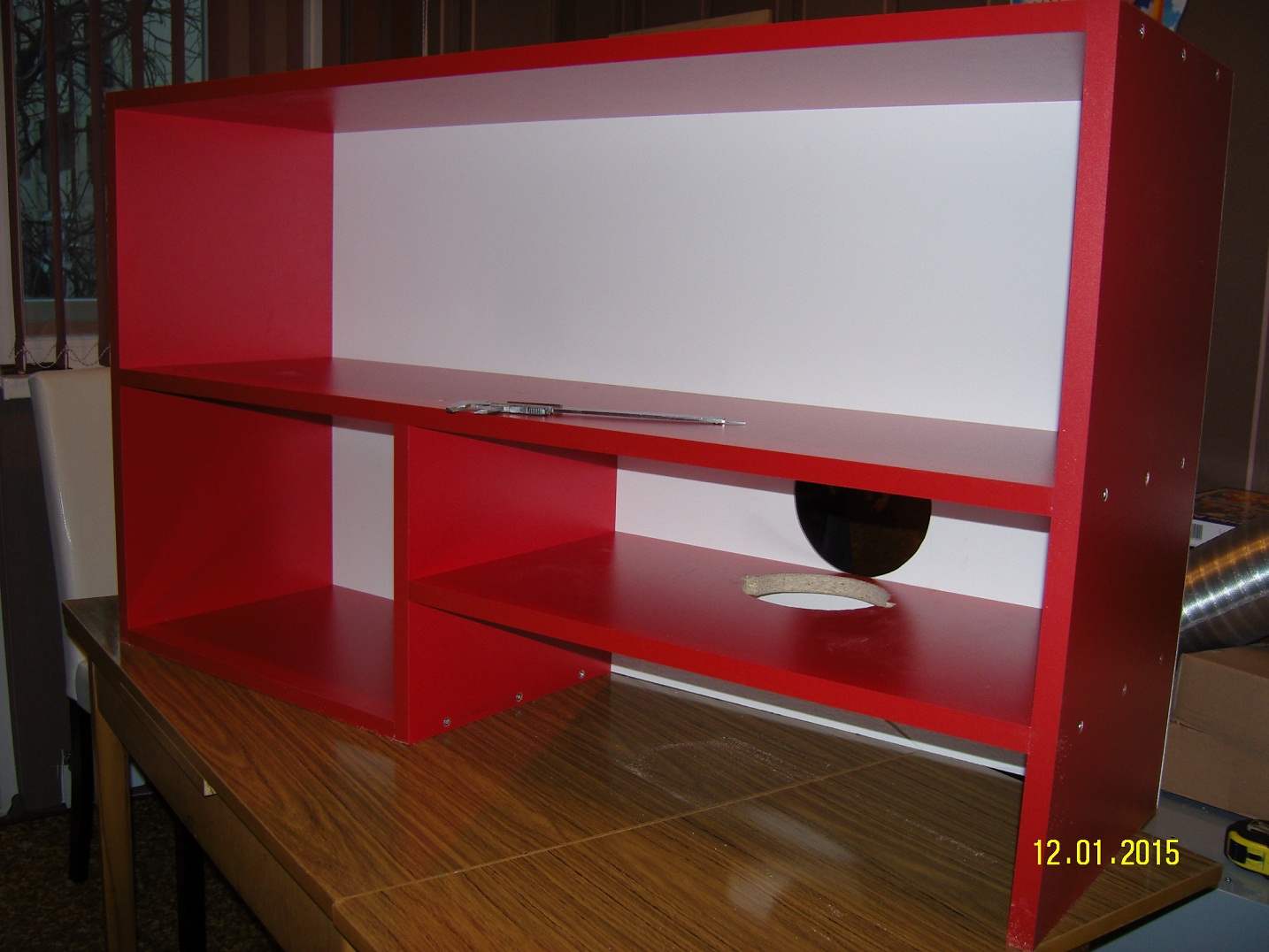 Горния шкаф е сглобен :partyman: след цели 5 часа работа :partyman: , но пък изпипах всичко до десета от милиметъра - разбира се мерих и с шублера :lol: може да ми се смеете, но на ролетката нямам вяра за такива прецизни работи ! Използвах винтове 3,5Х50 като предварително пробивах с 2,5 мм и правех легло така, че да потъне главата наравно с плоскостта !