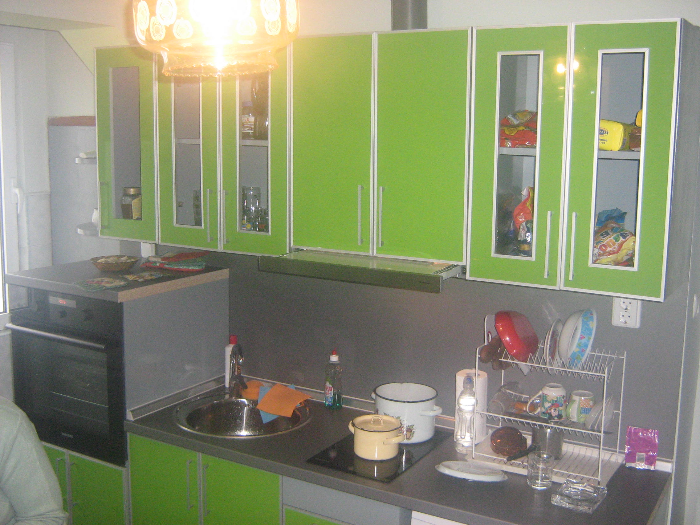 Браво много добре се е получило! Ако беше сложил стъкла, например химически мат щеше да стане още по-подобре. Трябвало е да кантираш плотовете, че така не стои много добре. Въпрос на вкус но аз бих разменил мястото на пералнята и котлоните. Айде със здраве да си я палзвате!