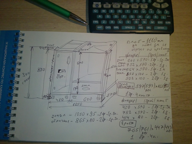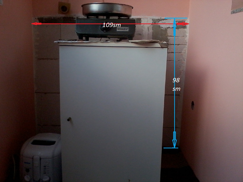 Трябва ми малко помощ за да направя шкафче за вграждане на фурна и място за газова бутилка ! Ето това е схемата на шкафа за фурната Но предполагам немода да ида с тзи чертеж и да искам да ми нарежат плоскости по размерите от чертежа ?? Мястото на което трябва да се направи шкафчето е с размери 109см.дължина и 98см. височина !! Ето това е мястото на което трябва да е шкафчето Мисля да го повдигна с крачета от пода около 8-10см,за да може да се чисти под него ! Как да направя чертежа с размерите на отделните детайли за да ми нарежат плоскостите ?