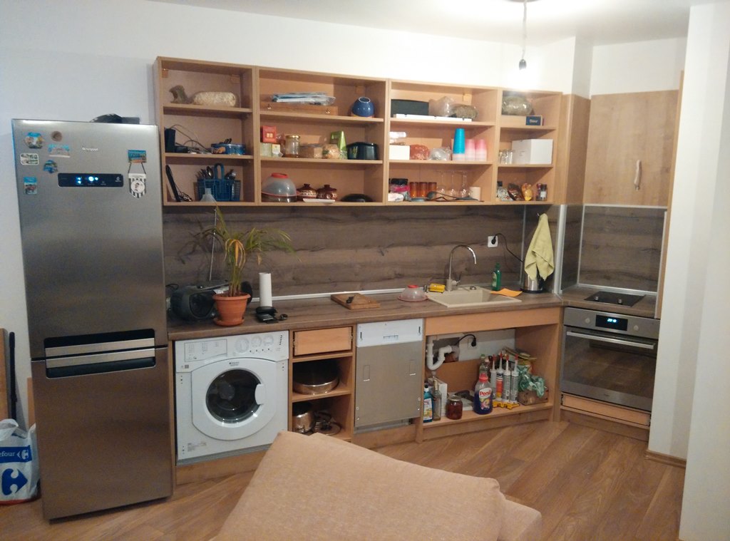 Здравейте. Какво ви е мнението за тази раздвижена кухня? На жена ми много и харесва. На мен също. Единствено не знам на живо дали ще ми хареса, защото в нета не намирам да видя нищо толкова раздвижено. С подходящо осветление смятам, че ще се получи добре. Кухнята е част от всекидневна, която също ще е с по - раздвижени мебели.