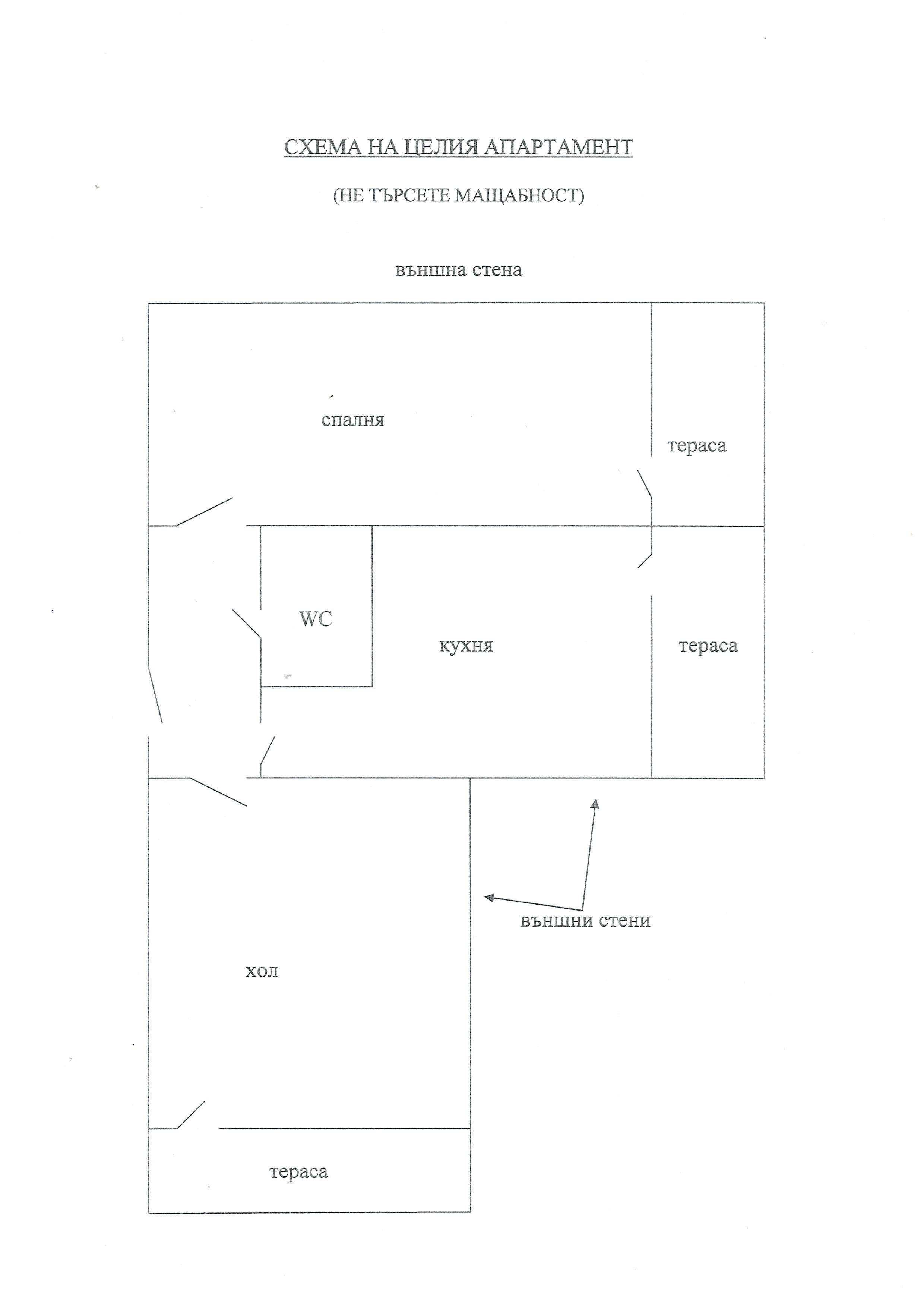 То се е видяло, че и аз ще търся помощ. Дано да съм на правилното място. Прочетох мисля не малко, но все пак не стигнах до решение, защото колкото постове във форума – толкова и различни мнения. Все пак ще съм благодарен ако някой си изкаже мнението, като по този начин ще ми помогне. Първо ви казвам че става въпрос за двустайно (две еднакви стаи) и кухня, 5 етаж в панелен – прилагам схема на апартамента.