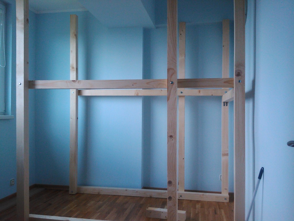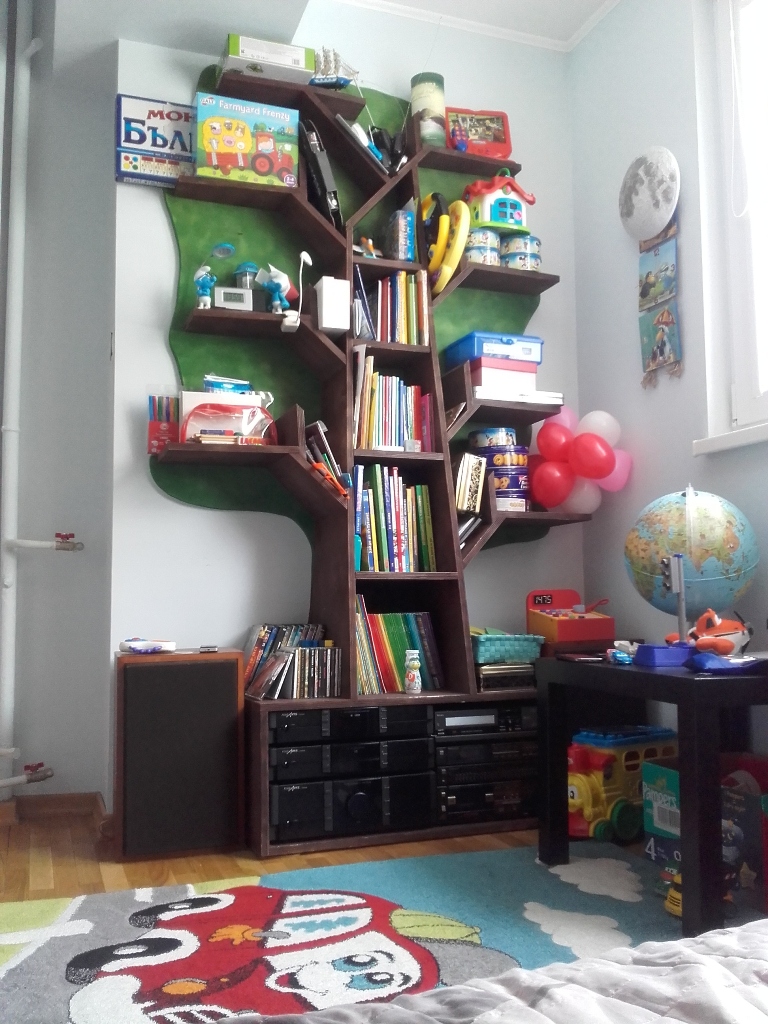 С безценната помощ от приятел, конструкцията за един уикенд беше готова. След това имаше лакиране и доукрасяване разбира се, но вече мина година и половина, откакто я направих и още добавяме по някой детайл тук и там.
