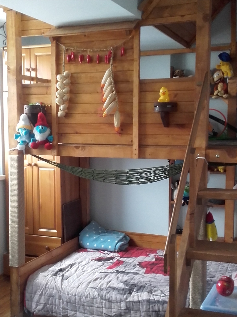 . Някакви бледи спомени от детството ми, както и самата практичност ми дадоха идеята за легло-къща. Хем става за спане, хем - за игра. Не че съм имал, ама сякаш винаги съм искал да имам такова нещо.