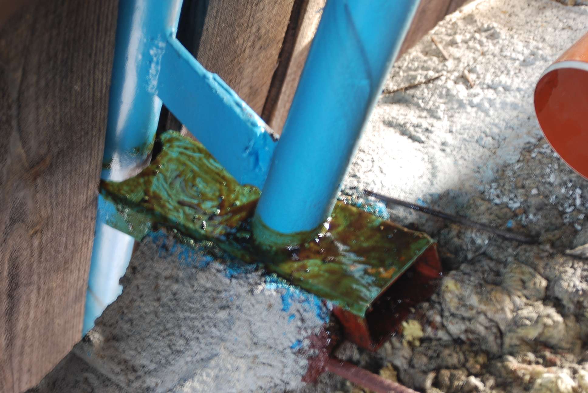 Както се вижда съм взел превантивни мерки - тръбите са грундирани и боядисани, а самите стъпки (обувките) са консервирани с оражейна смазка. Тук не се вижда, но кухината е натъпкана разбира се с вата, напоена със смазка. За да няма движение на въздух по тръбите, навсякъде са запушени.