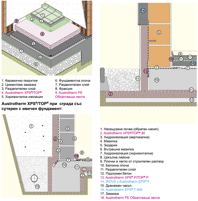 В системата на Аустротерм, които не се съмнявам са сериозни специалисти в тяхната област, за подова изолация има доста въпроси. По картинката в файла в две от трите решения се виждат термо мостове от фундамента към зидарията. В нито един от случаите не виждам зидарията да е изолирана от фундамента, нито пък зидарията да почва върху изолационен слой. Как се избягват термо мостовете? Това потвърждава ли мнението, че върху изолация не може да се вдига не носеща стена?