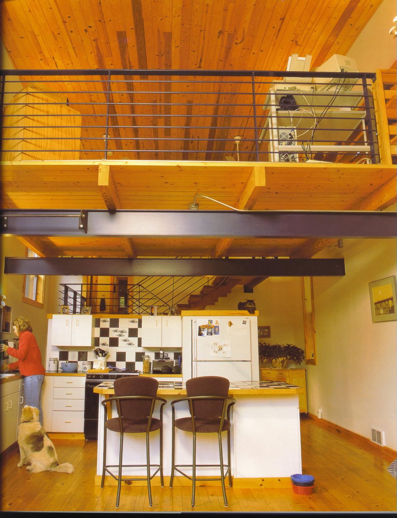 На следващите две снимки стоманените греди са зад дървената облицовка.